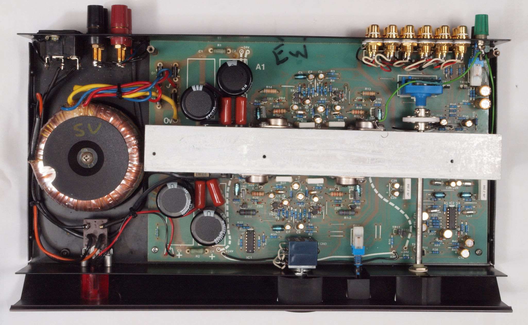 | A162. 点検中 上蓋(放熱器)を取り、上から見る。電源トランスが芯からズレている。 | ||||||||||||||||||||