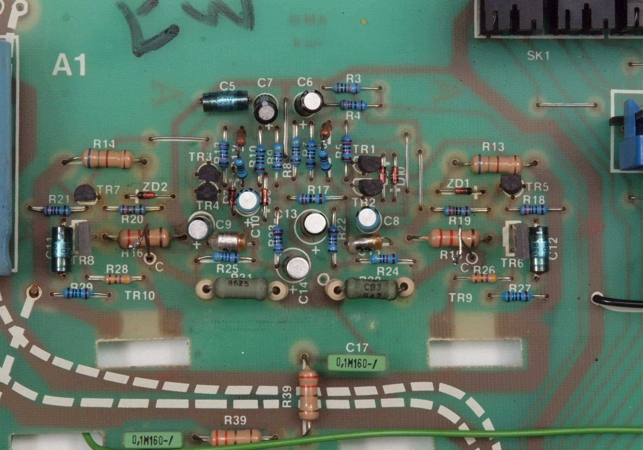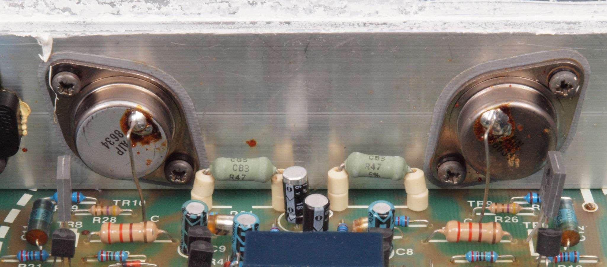 | A91. 点検中 終段TR(トランジスター)のエミッター抵抗(低歪タイプ)は測定中して選別使用。福島双羽電機(株)製。 | ||||||||||||||||||||