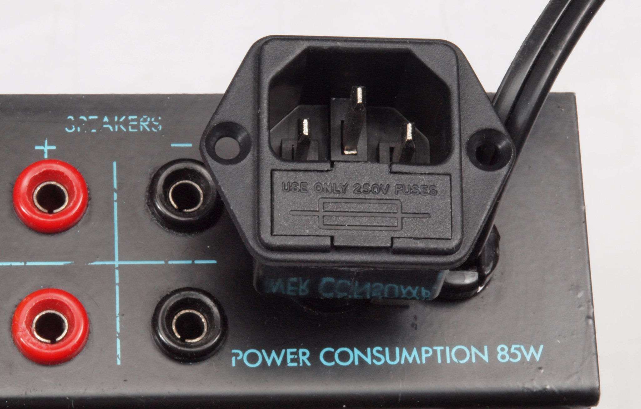 | A63. 点検中 電源コードをヒューズ付き3Pインレットに交換。横向きにするとSP接続端子への通線が楽。 | ||||||||||||||||||||