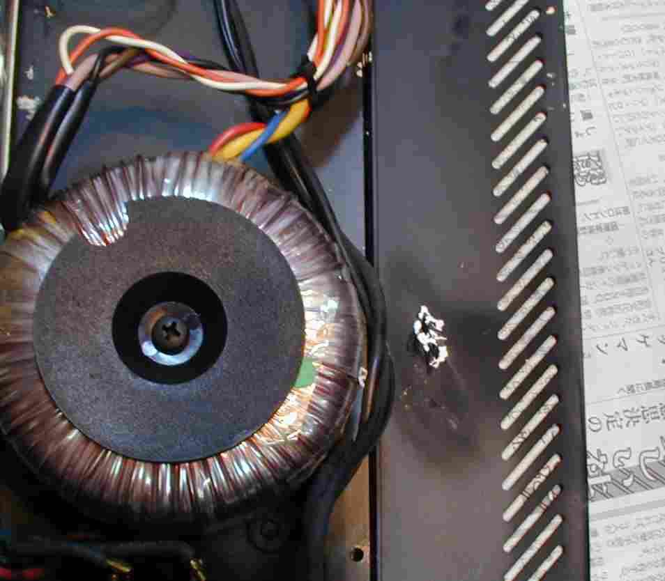 | 2. トランス/フューズが焼けた側板の跡。 | ||||||||||||
