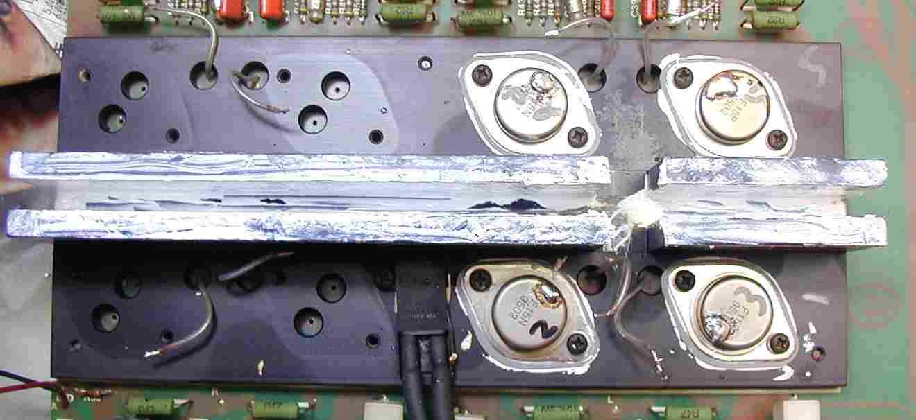 | 3. 終段TR(トランジスター)に放熱用のシリコングリスを塗っている所。 グリスは塗布されず取り付けられていた。 |