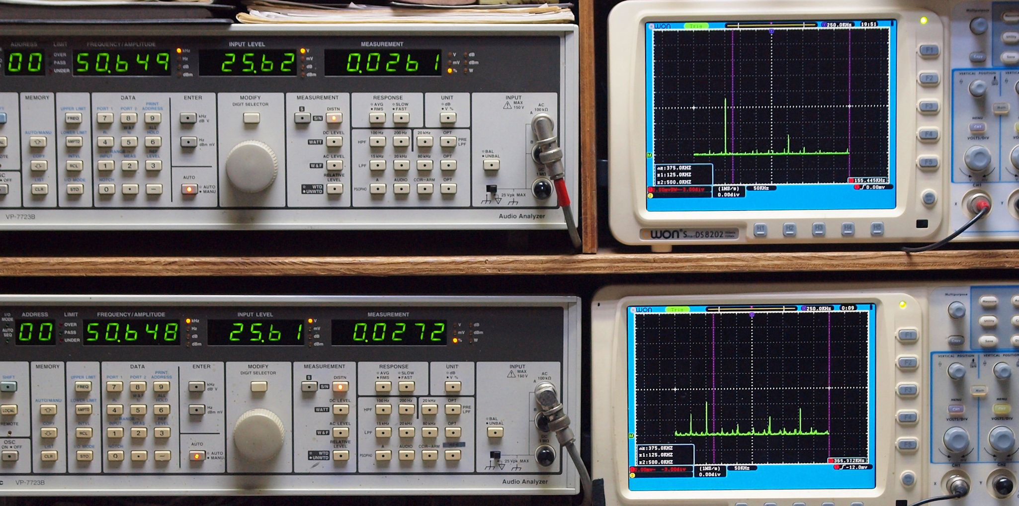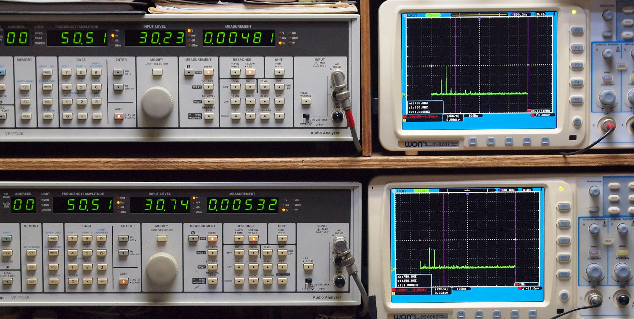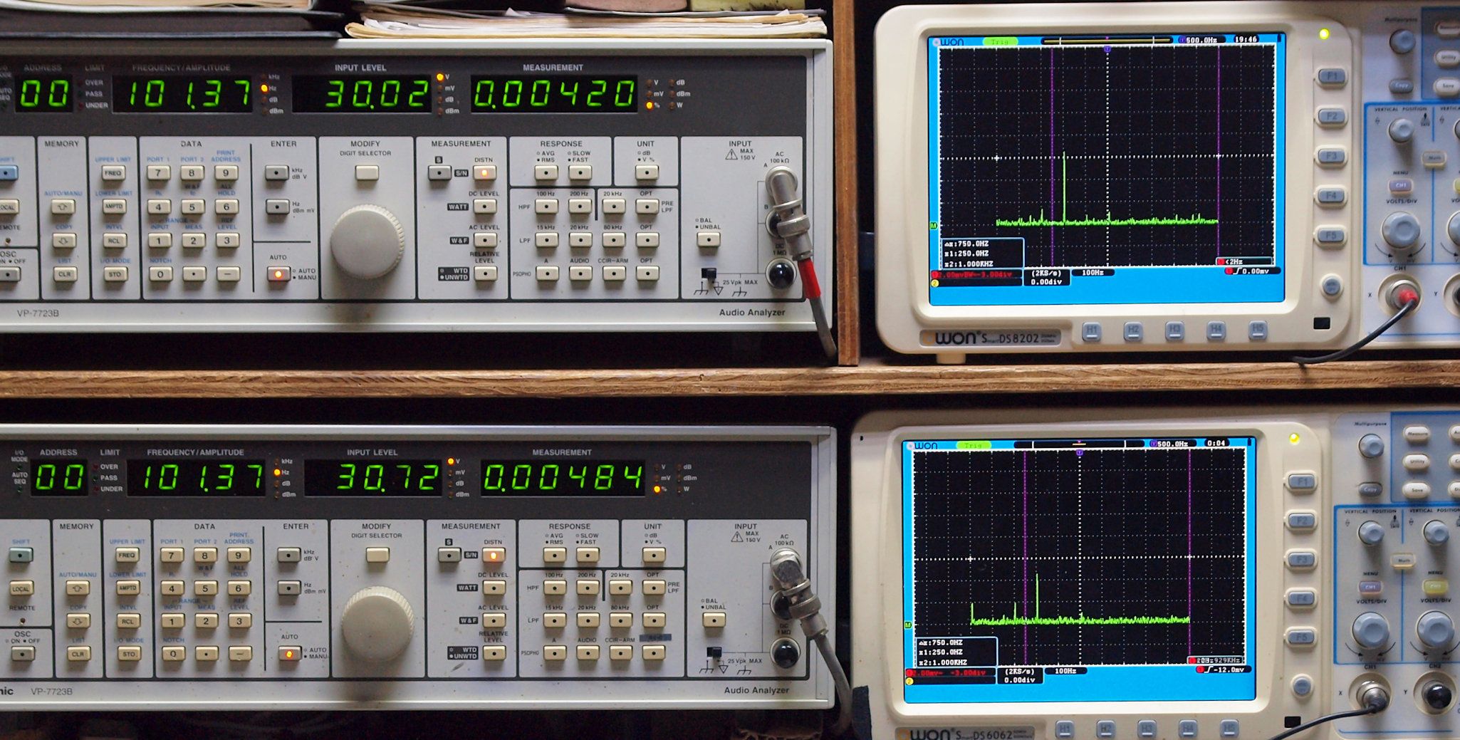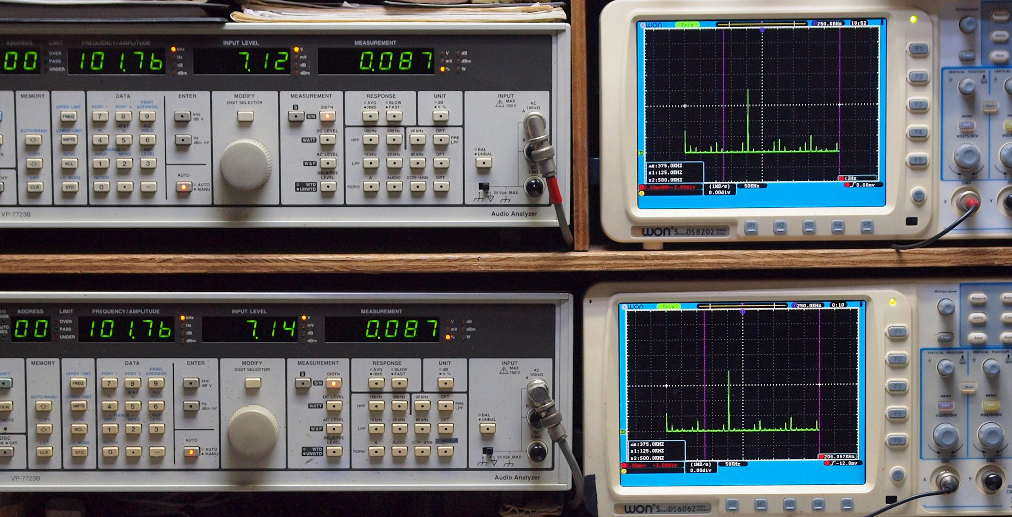 よって、ダイアル設定出力レベルより低くなります。測定機器の仕様や整備の様子はこちら、「VP−7723B」「VP−7201A」。 FFT画面の見方はこちら。