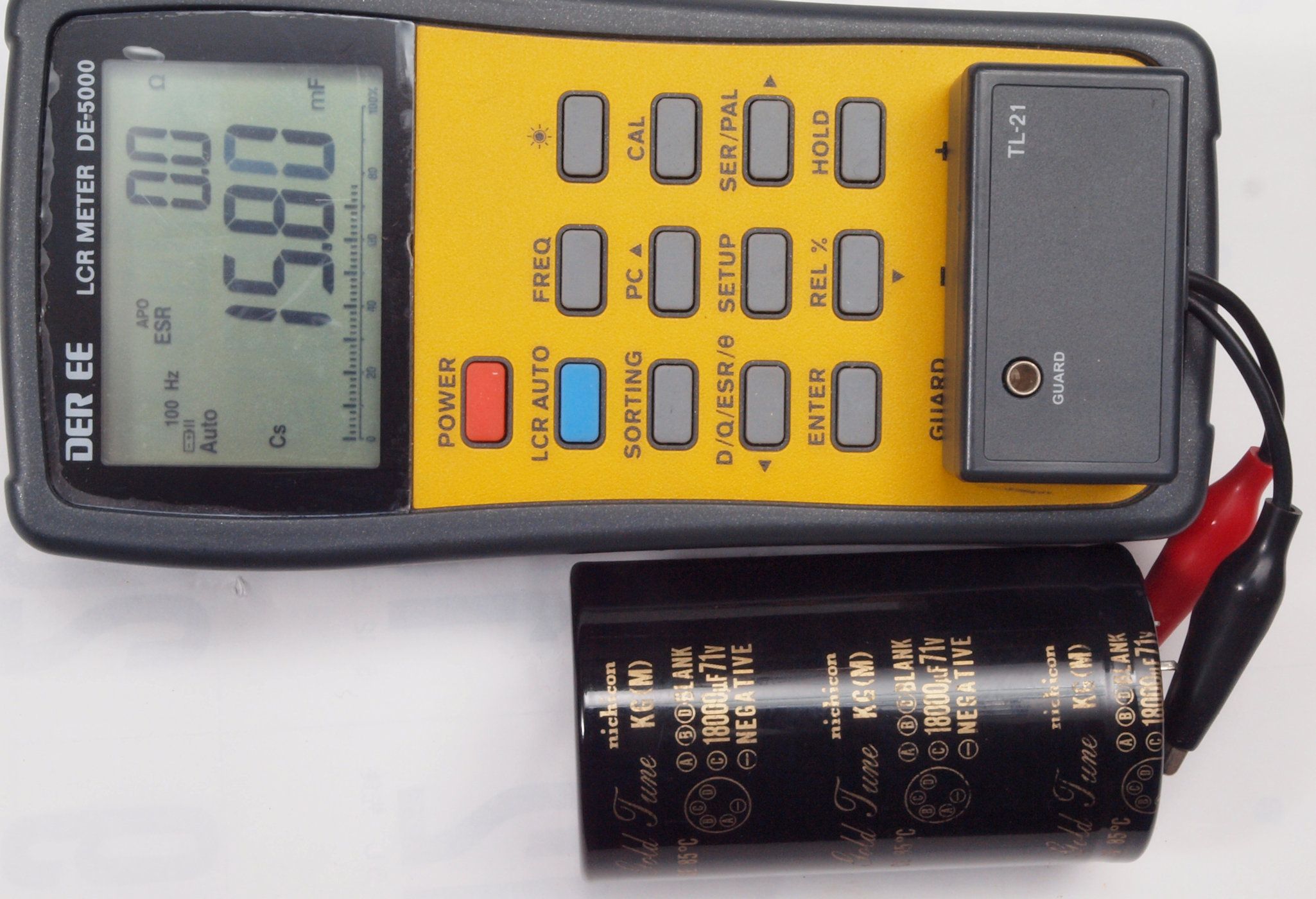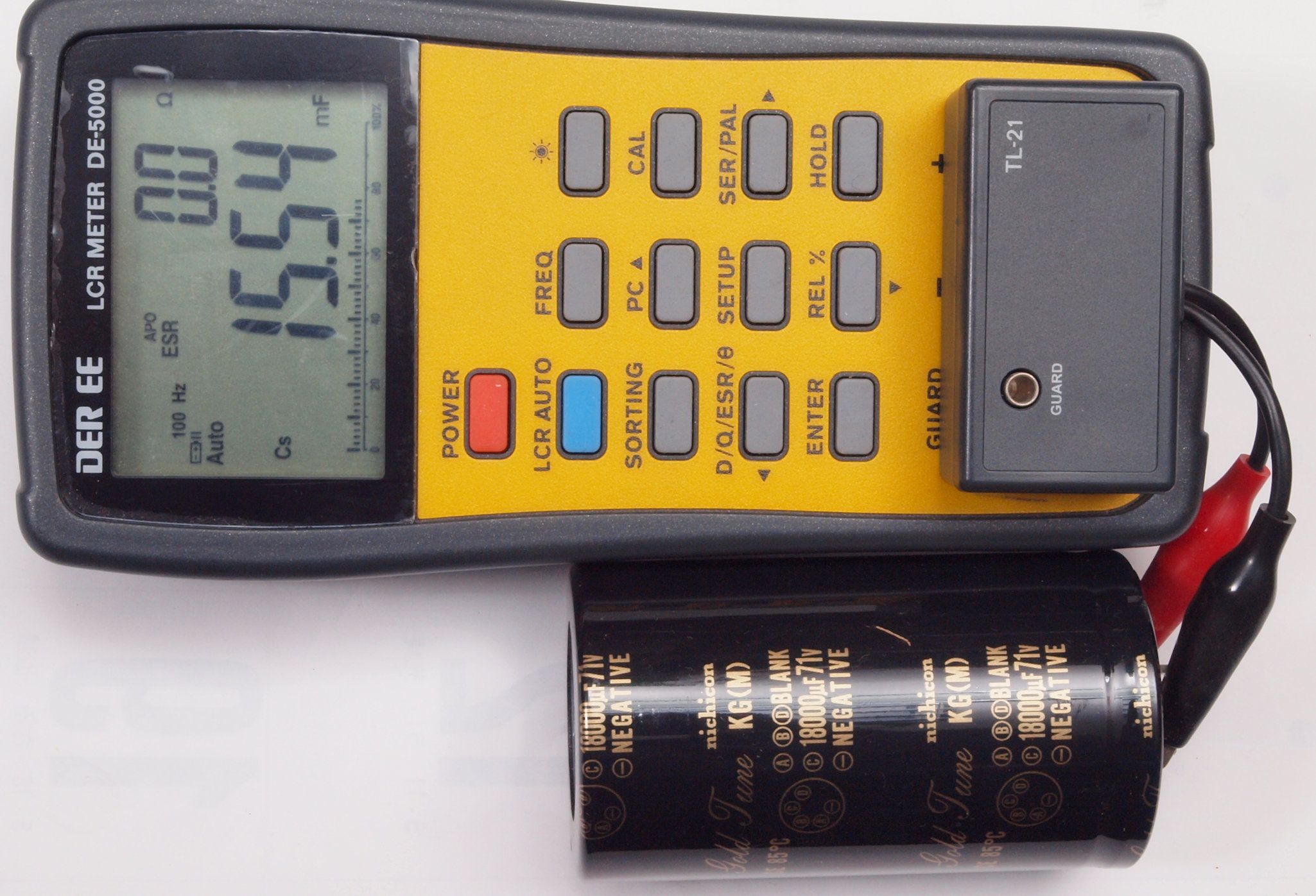 A32. 点検中 交換するニチコン製71V/18000μFを測定する。