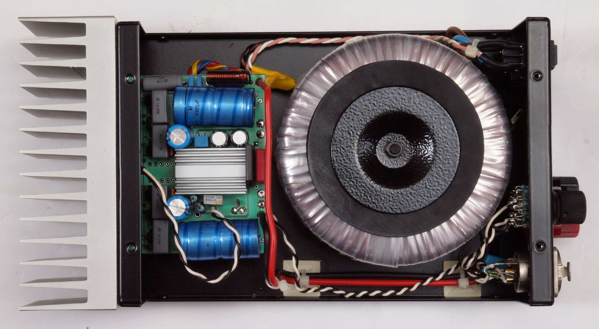 A18. 点検中 上蓋を取り、上から見る。 アンプからの入力配線は2本、バランス入力には非対応