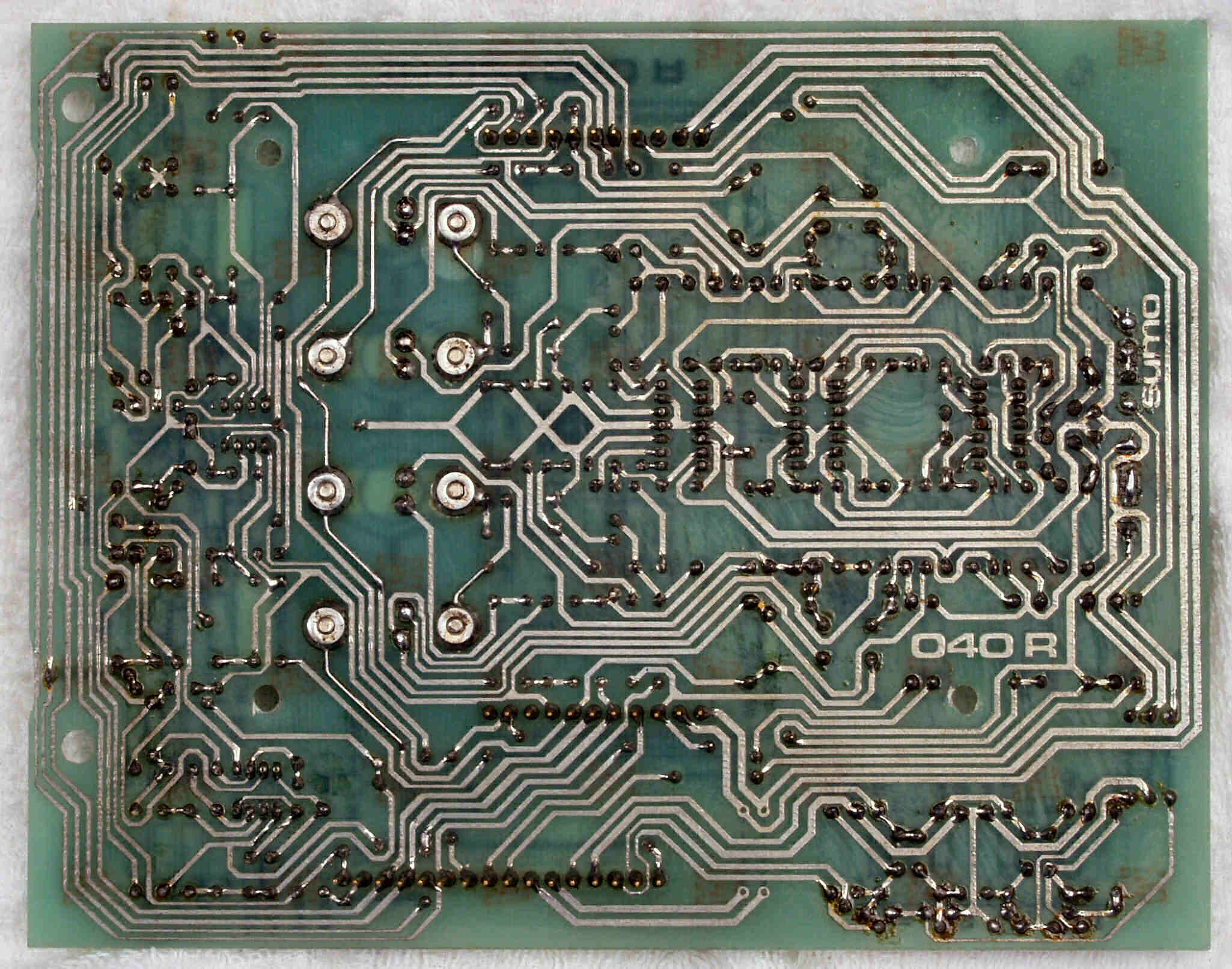C64. 修理(半田補正)後 L「+」側−終段TR(トランジスター)基板裏、 半固定VR1個交換