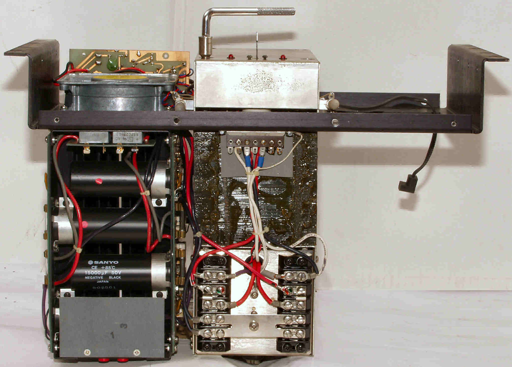 C51. 修理中 終段ユニット修理中、写真の「レンチ」は電源トランスの取り付けネジを締結中、何と!!4本とも、数十回締結。