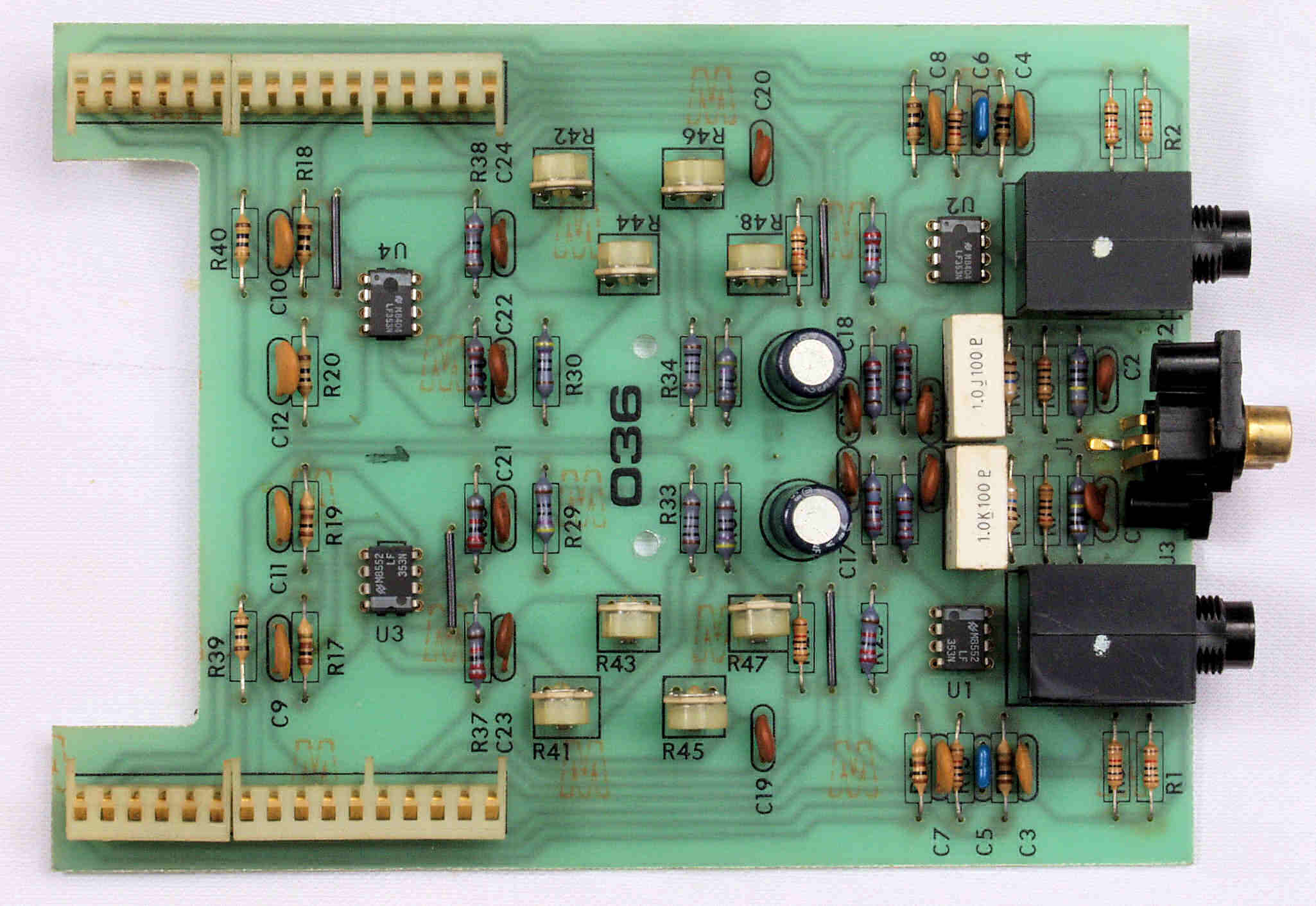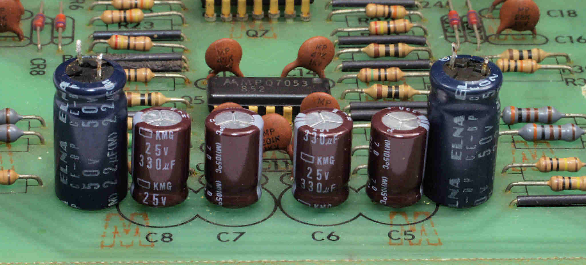 C23. 修理後 入力基板、OP−AMP4個、半固定VR8個、電解コンデンサー4個交換