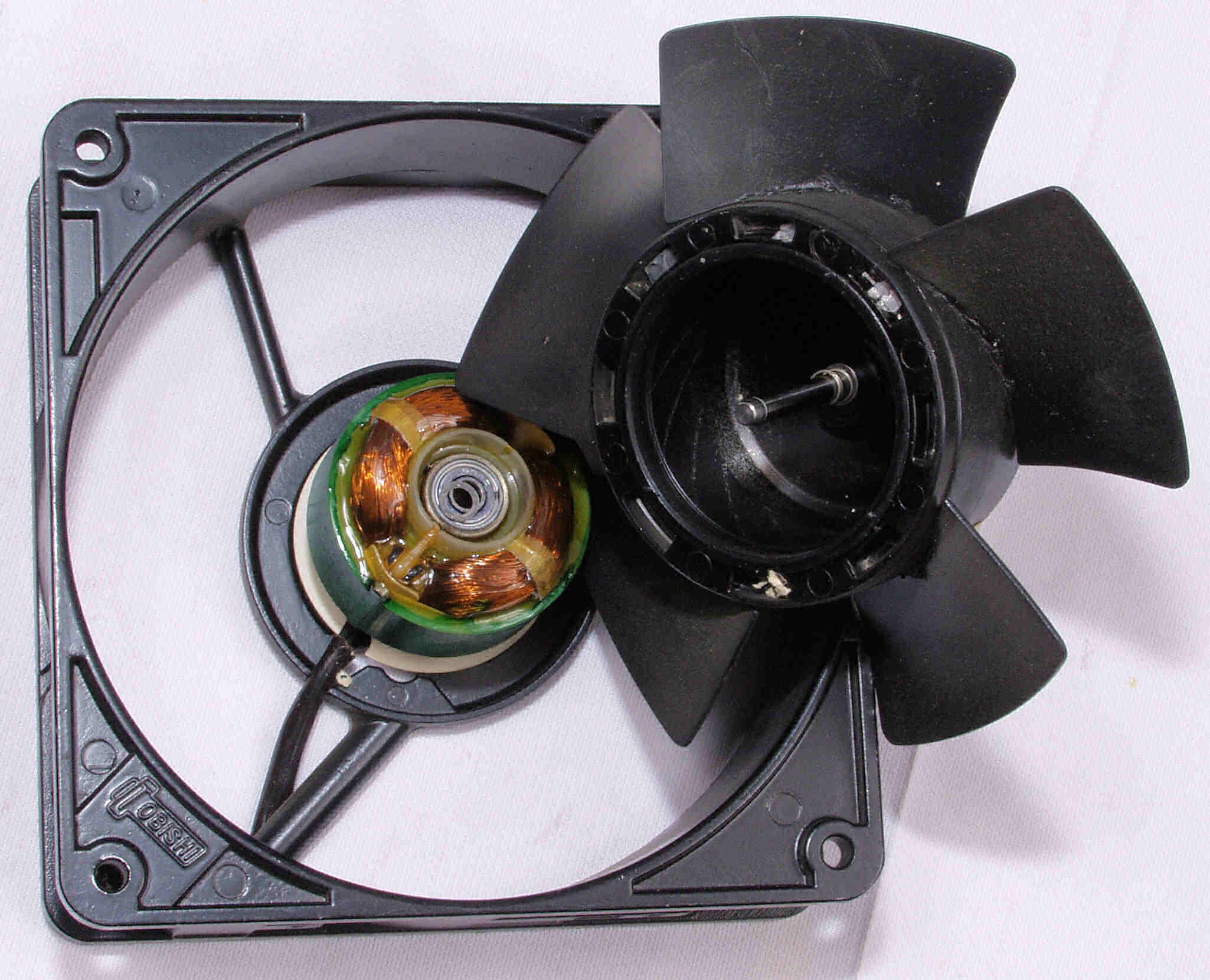 C7G. 修理中 R側冷却フアン分解・清掃・給油。ベアリングが摩耗しているので、音が少し出るが、風切り音が遙かに大きい。