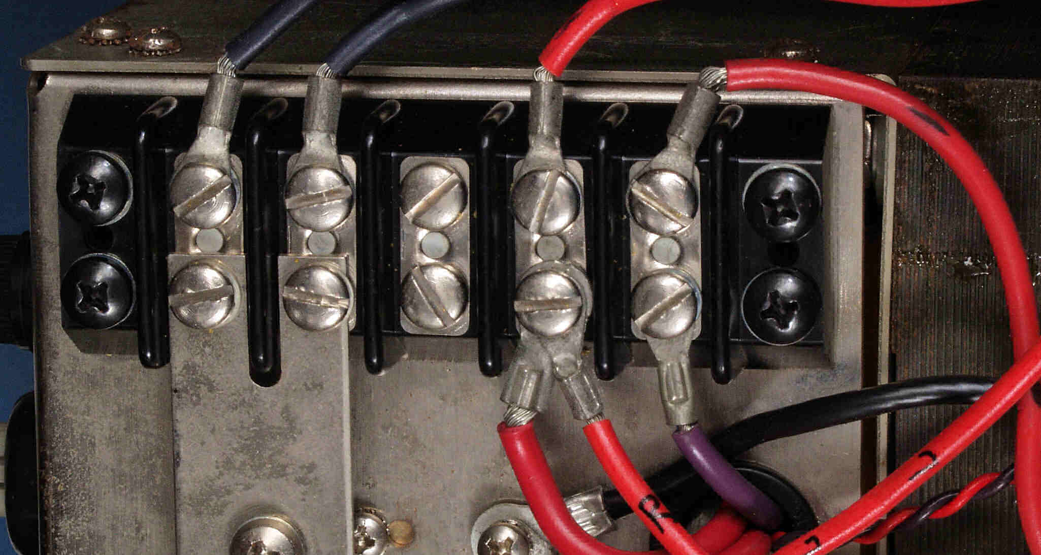 C52. 修理中 電源トランス点検。うなり防止の為添え木。上に見えるリレーは突入電流抑制用。