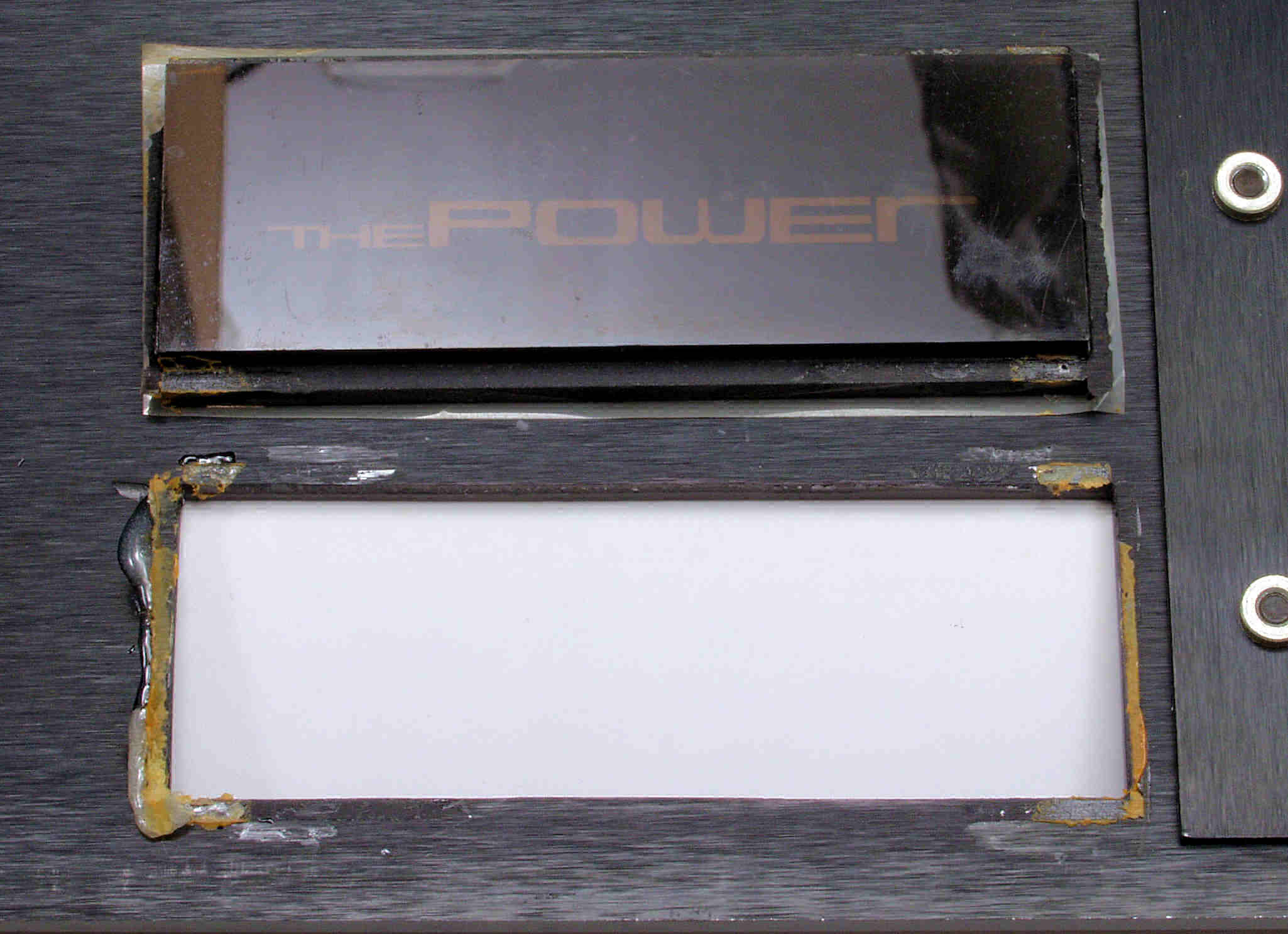 CE1. 修理中 前パネル・エスカッションの取り付け、殆ど接着材が付いていない。
