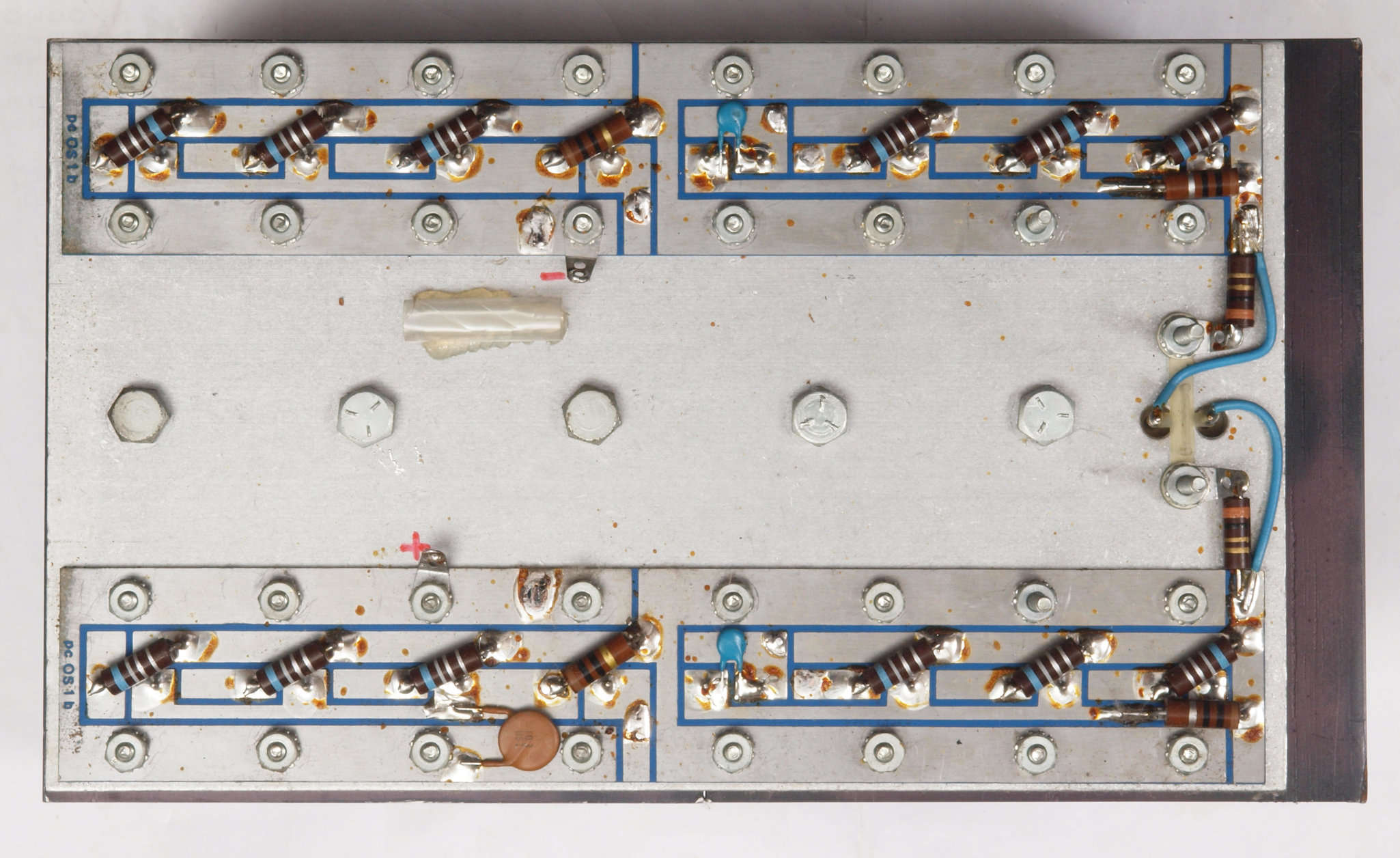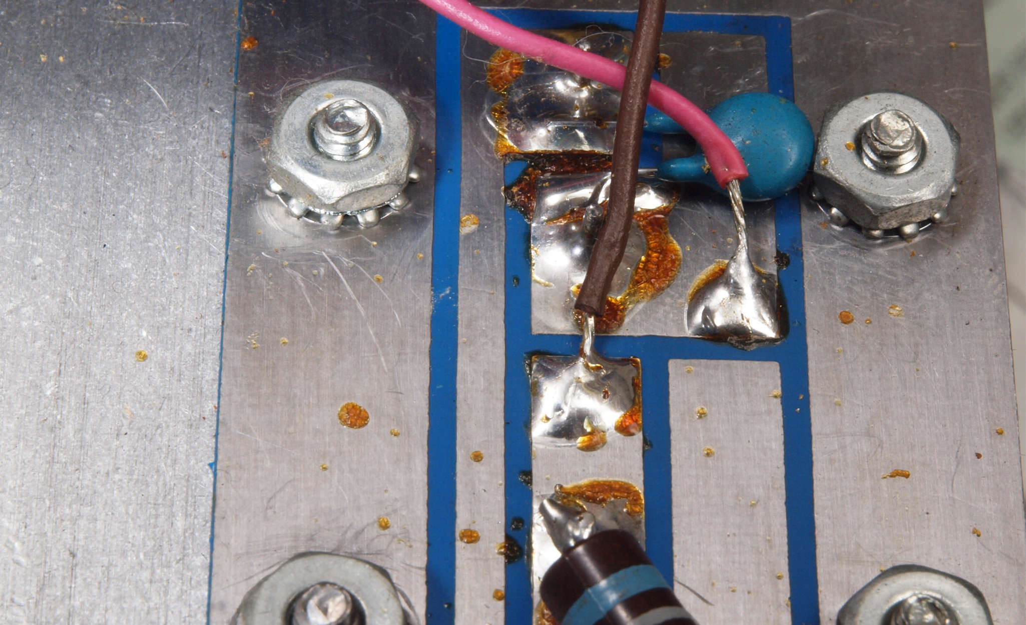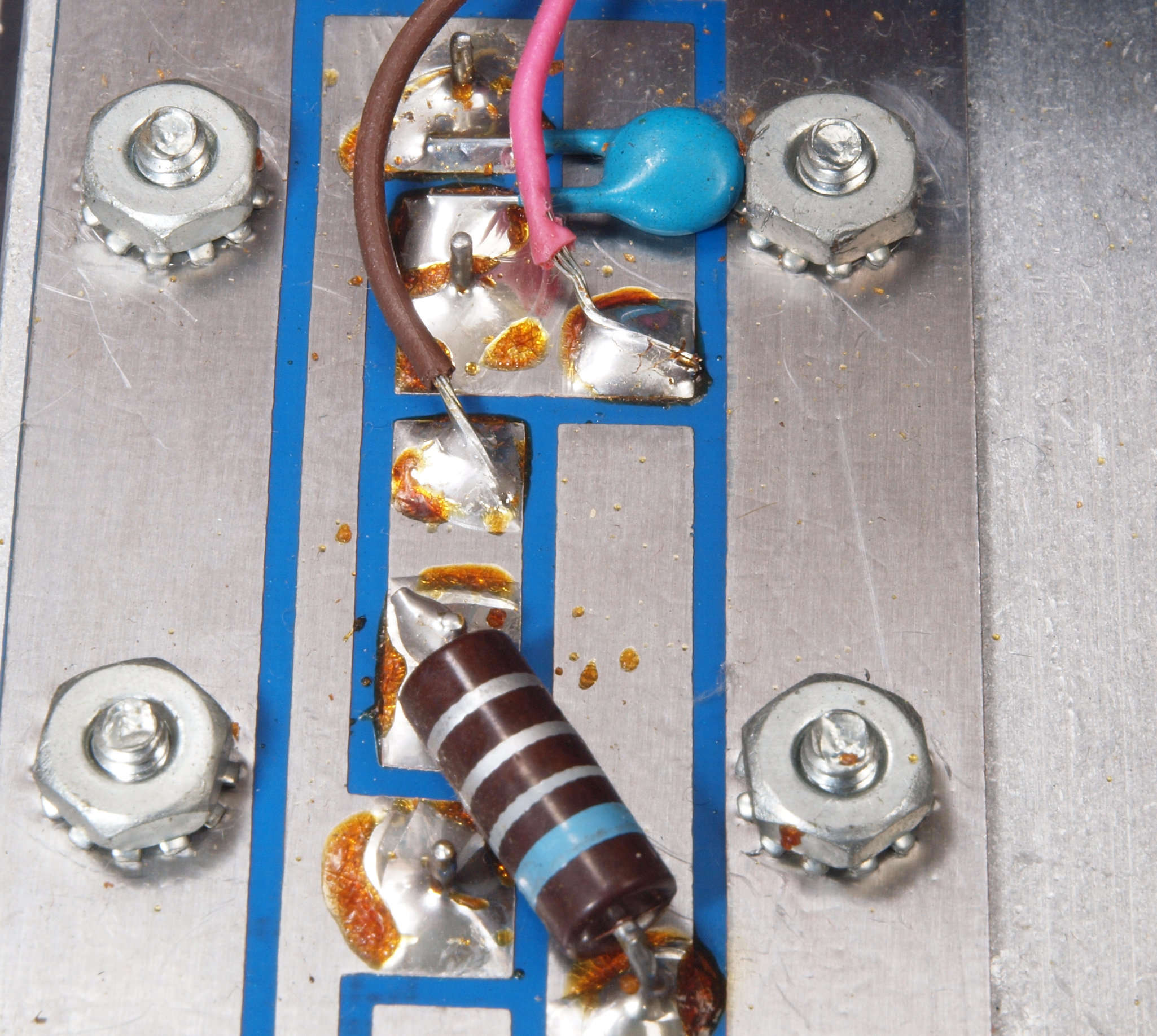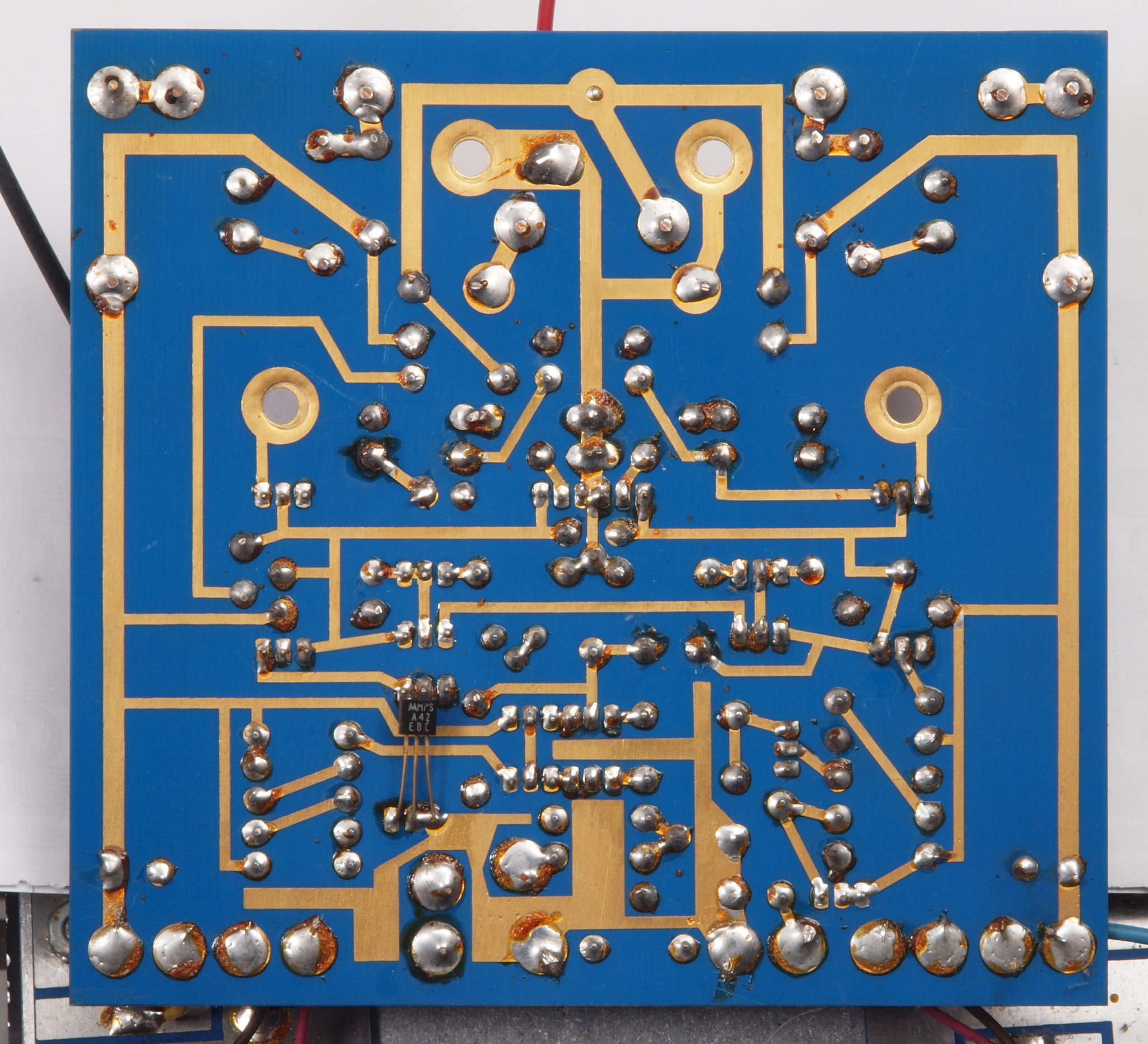 C64. 完成左終段TR(トランジスタ−)裏。 洗浄後防湿材を塗る。