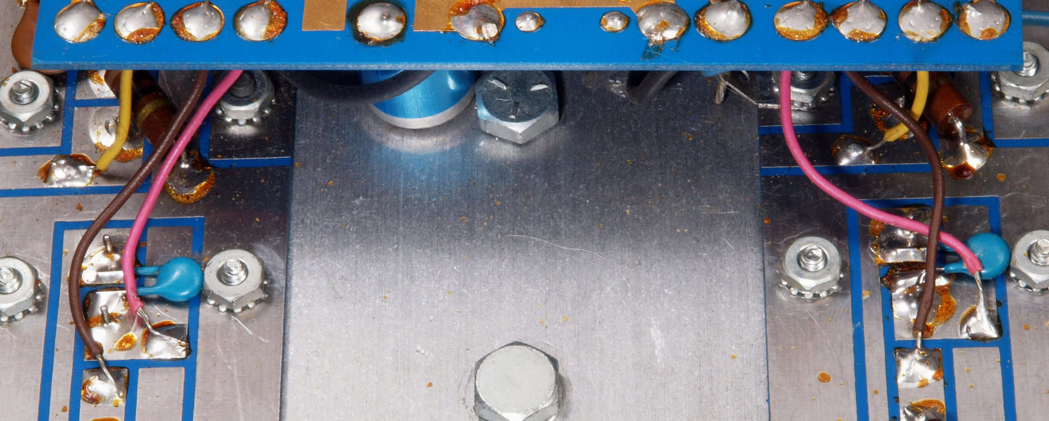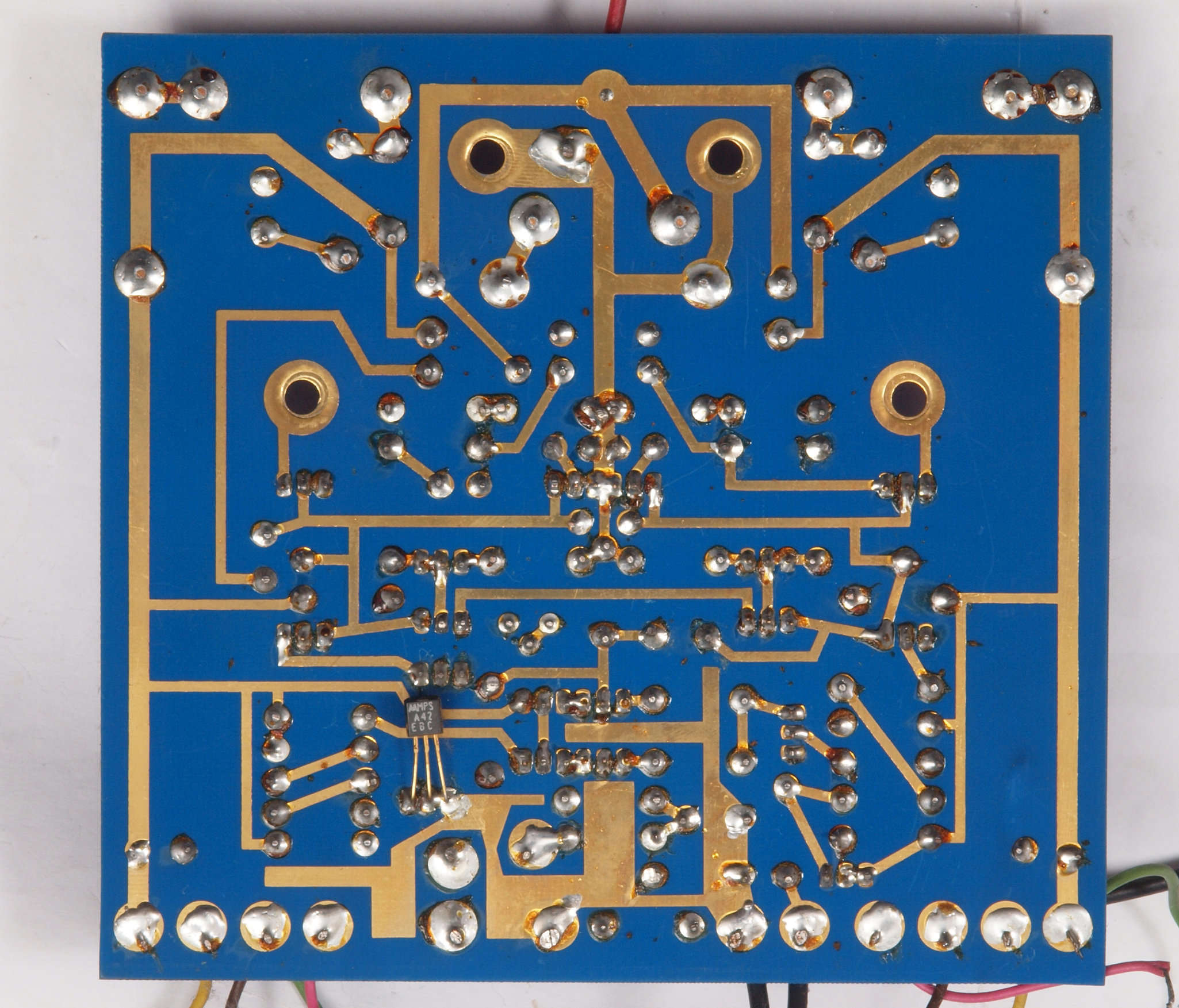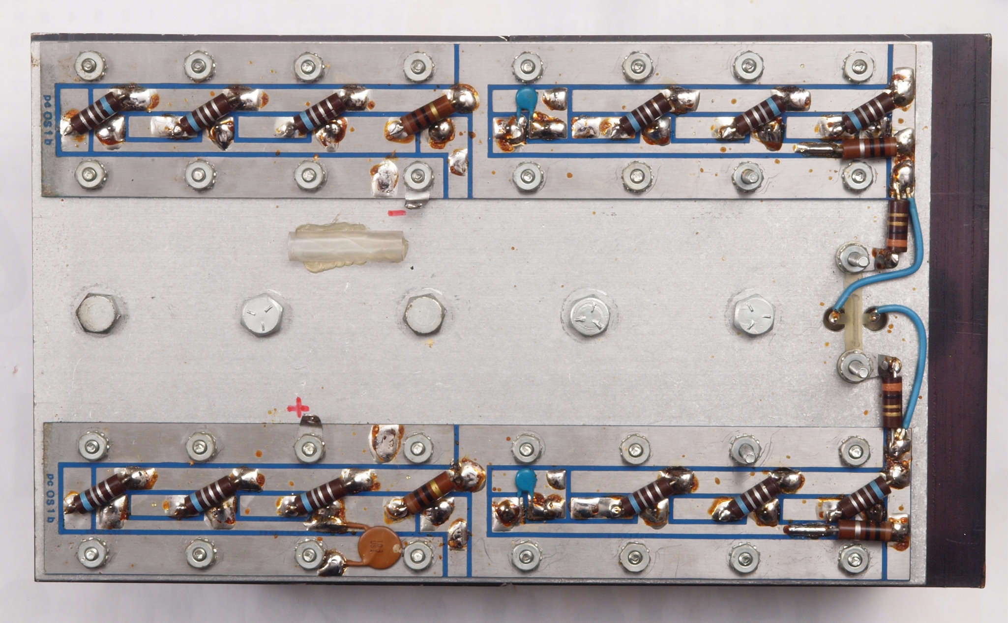 C64. 完成左終段TR(トランジスタ−)裏。 洗浄後防湿材を塗る。