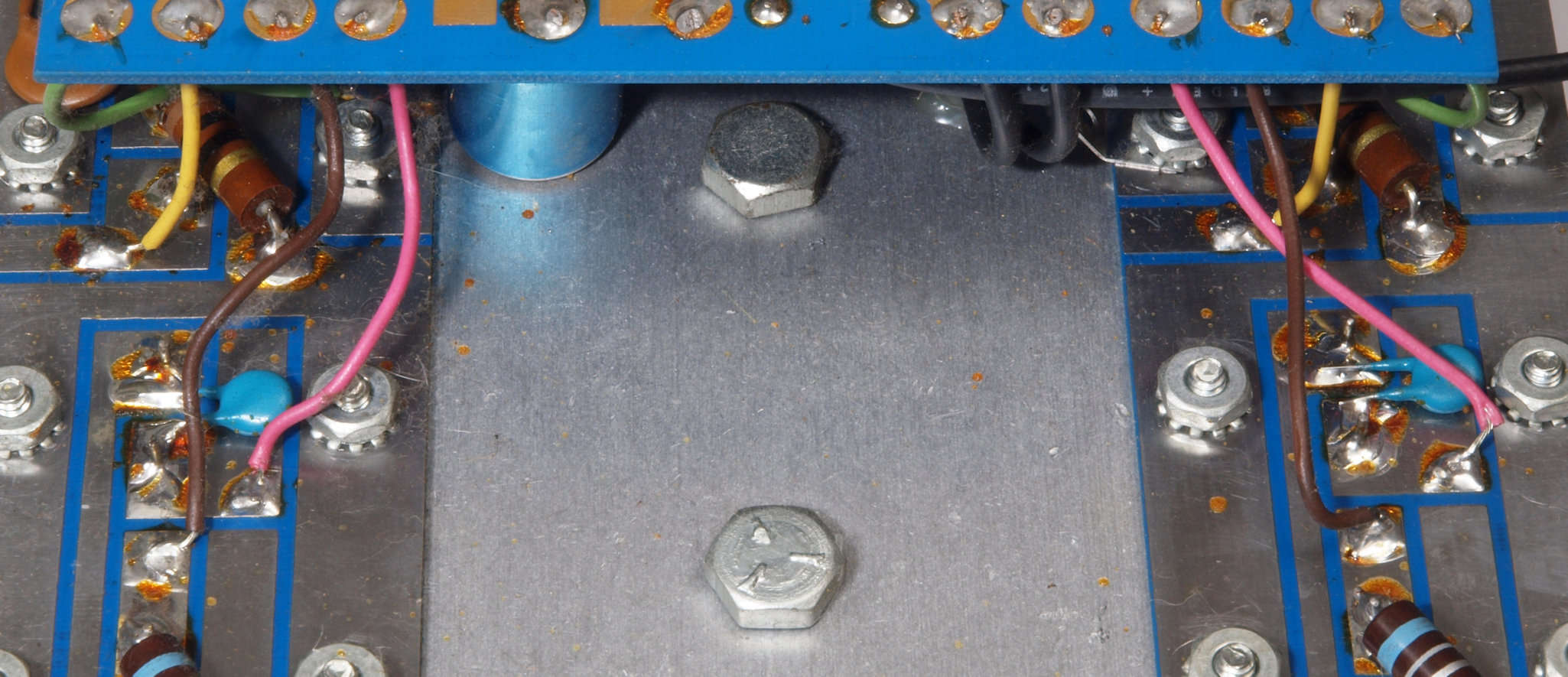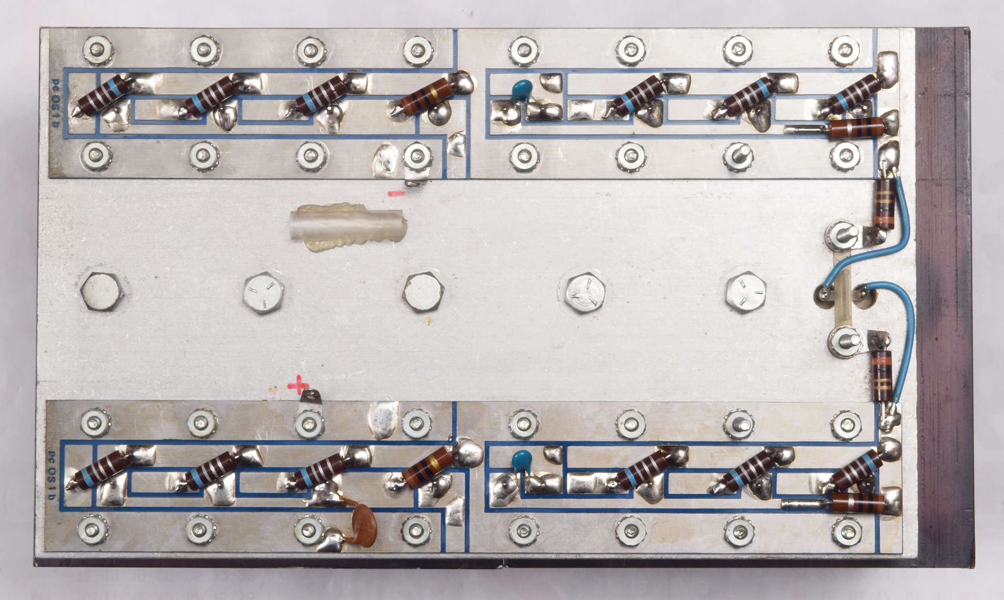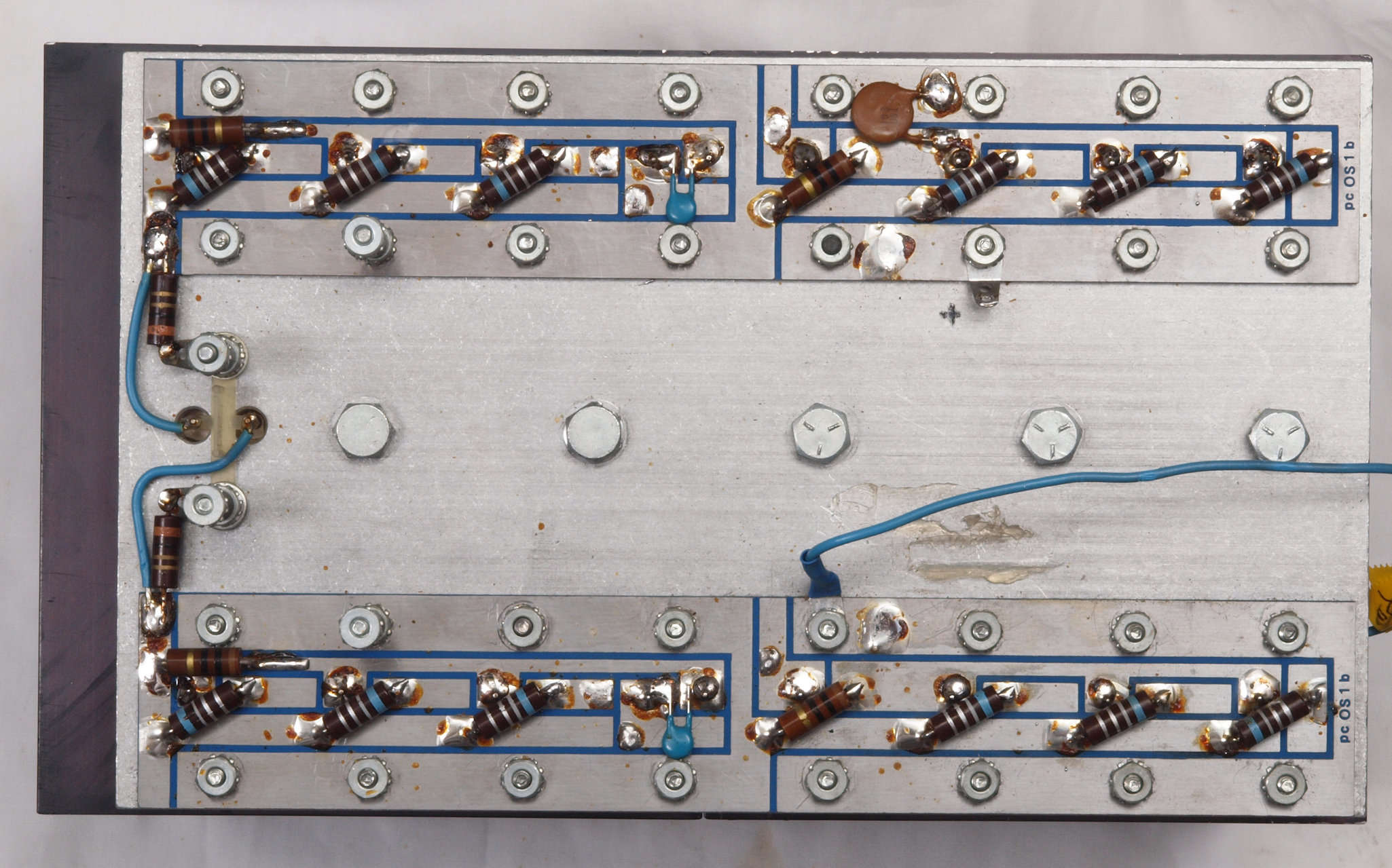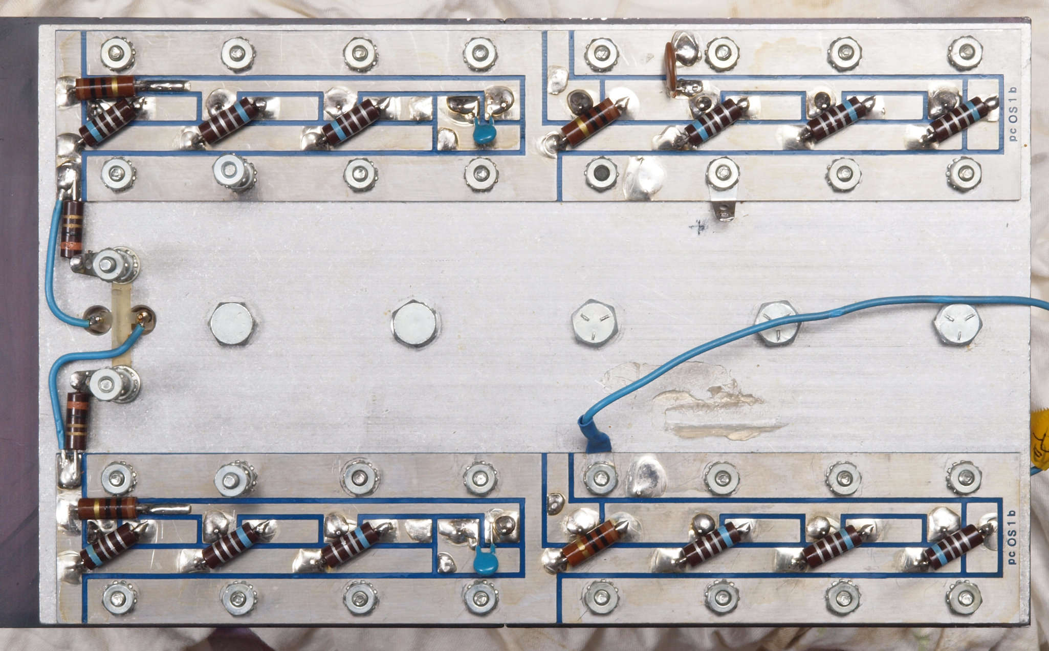 C64. 完成左終段TR(トランジスタ−)裏。 洗浄後防湿材を塗る。