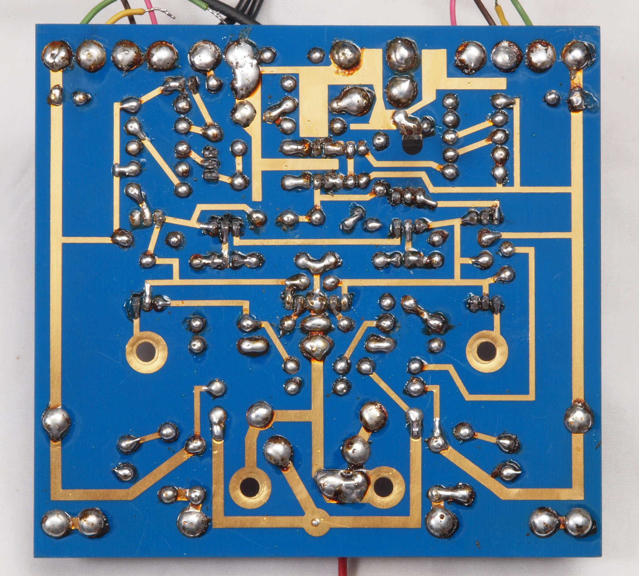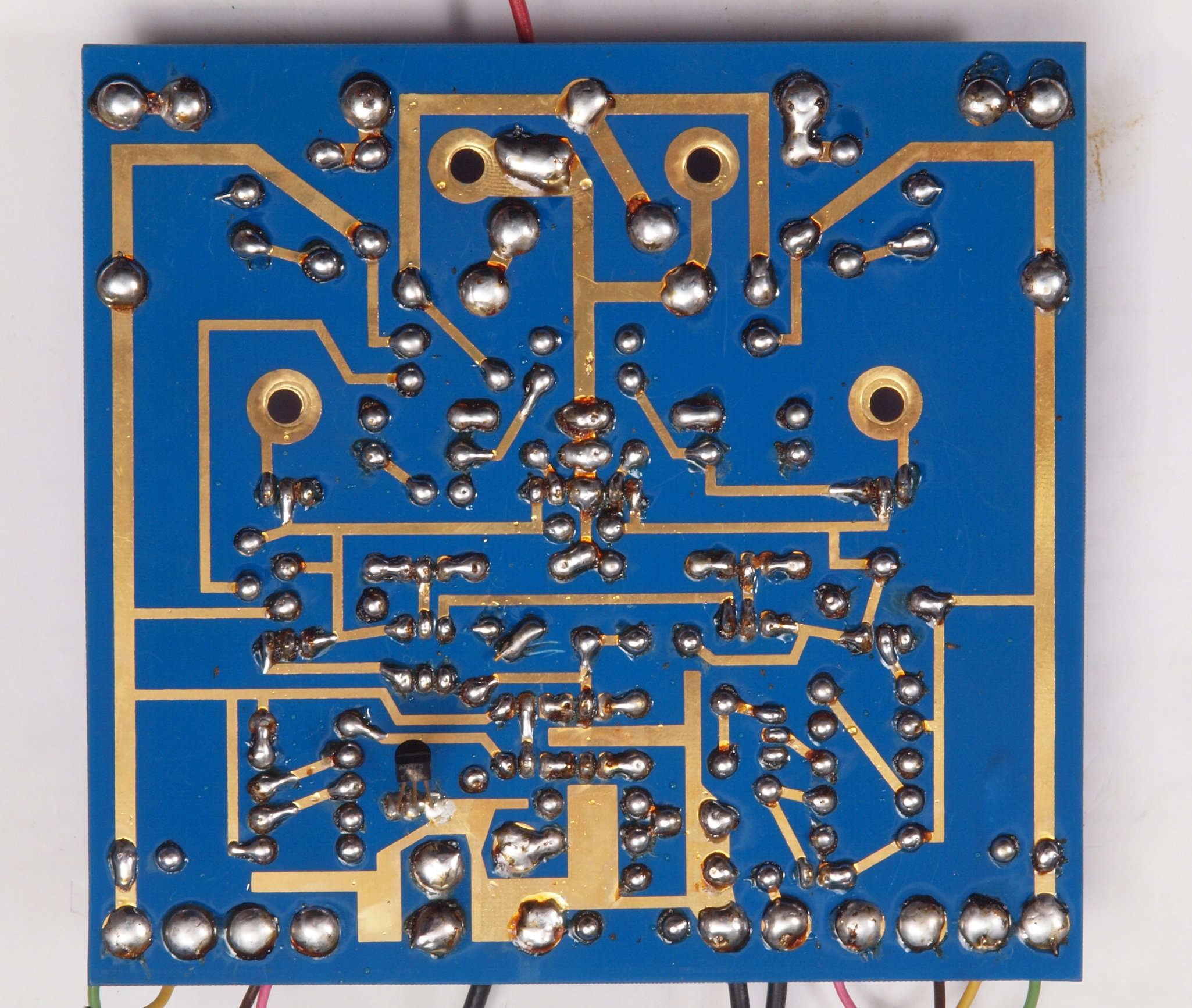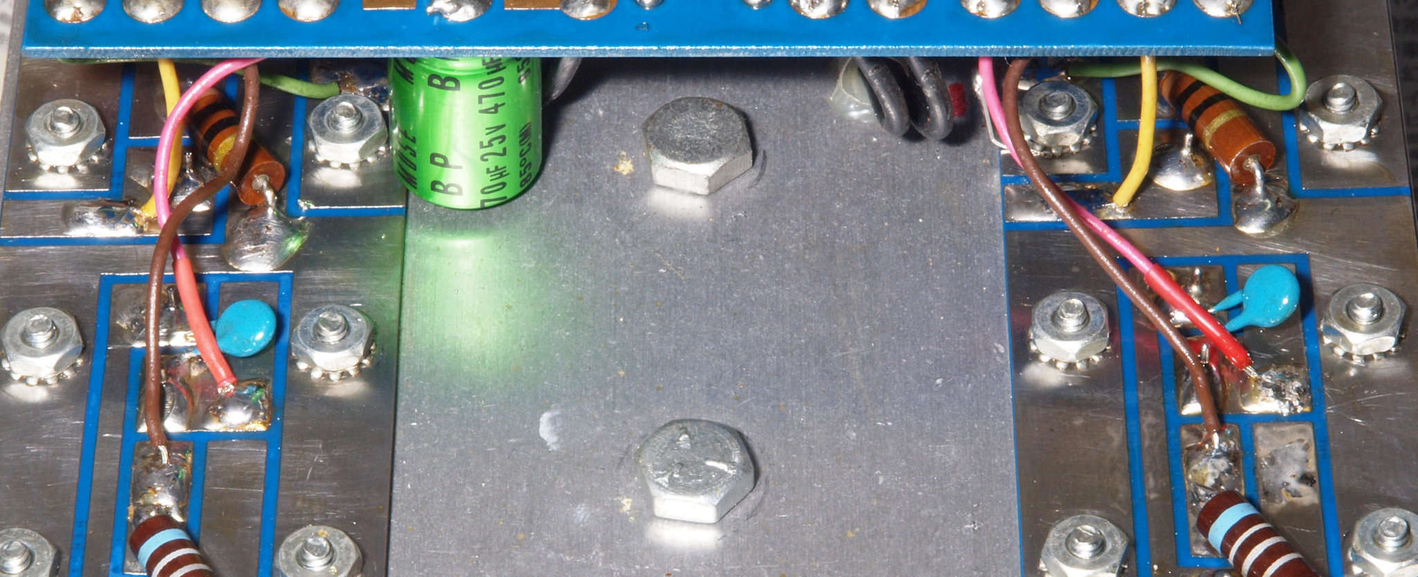 C63. 修理(半田補正)後 左終段TR(トランジスタ−)裏。 全ハンダやり直す。