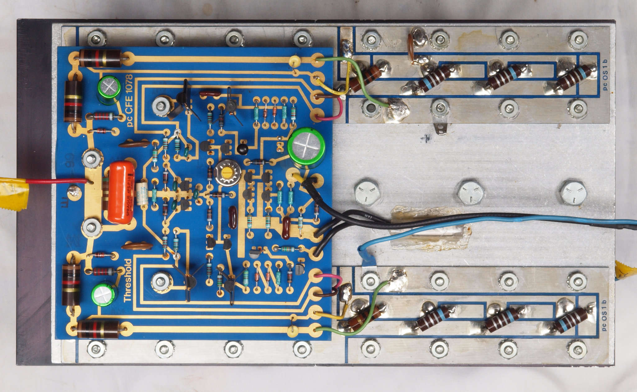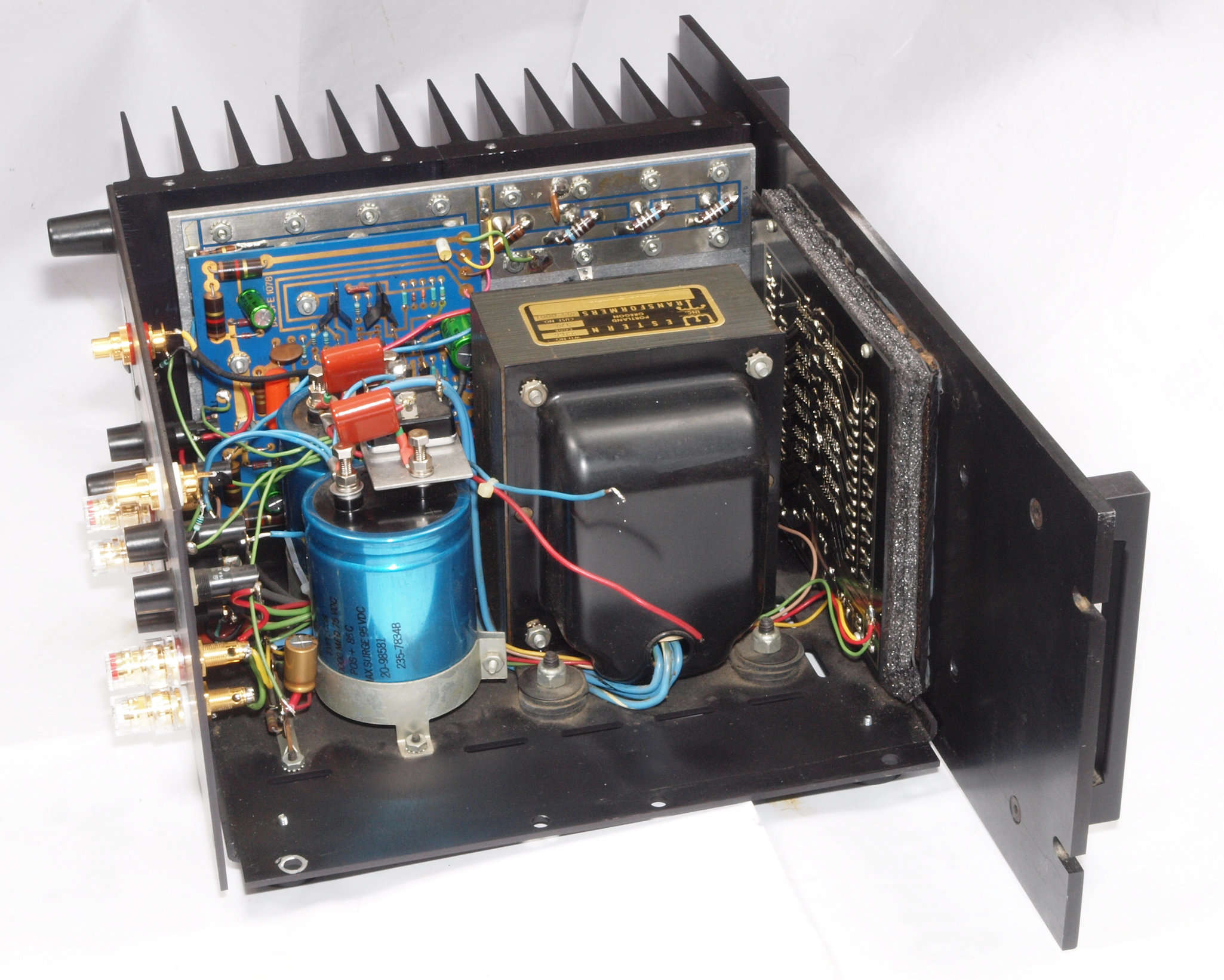 C12. 修理後 右AMPブロック裏。電解コンデンサー3個、半固定VR1個交換。