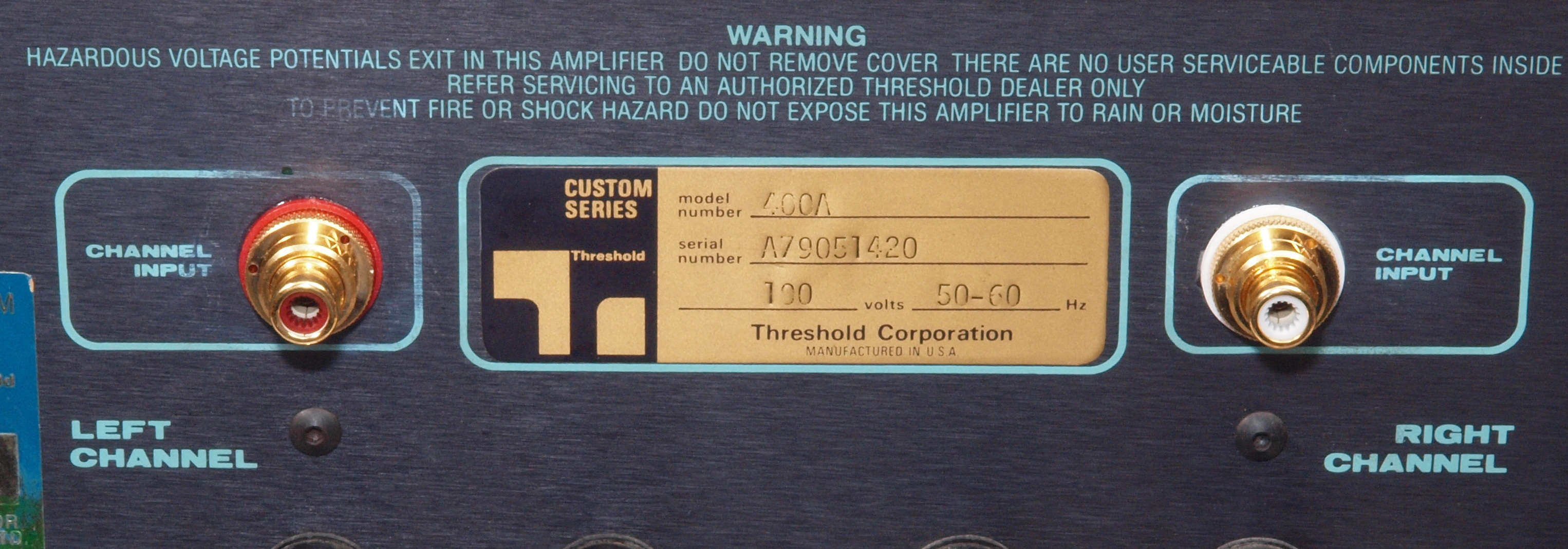 理由はWebのオーディオの足跡の400Aと400Acusの説明文にもあるように、フロントのパネルにCascode/classAと書いてある、リアパネルも400Aとは違うし、custom seriesと書いてあります。