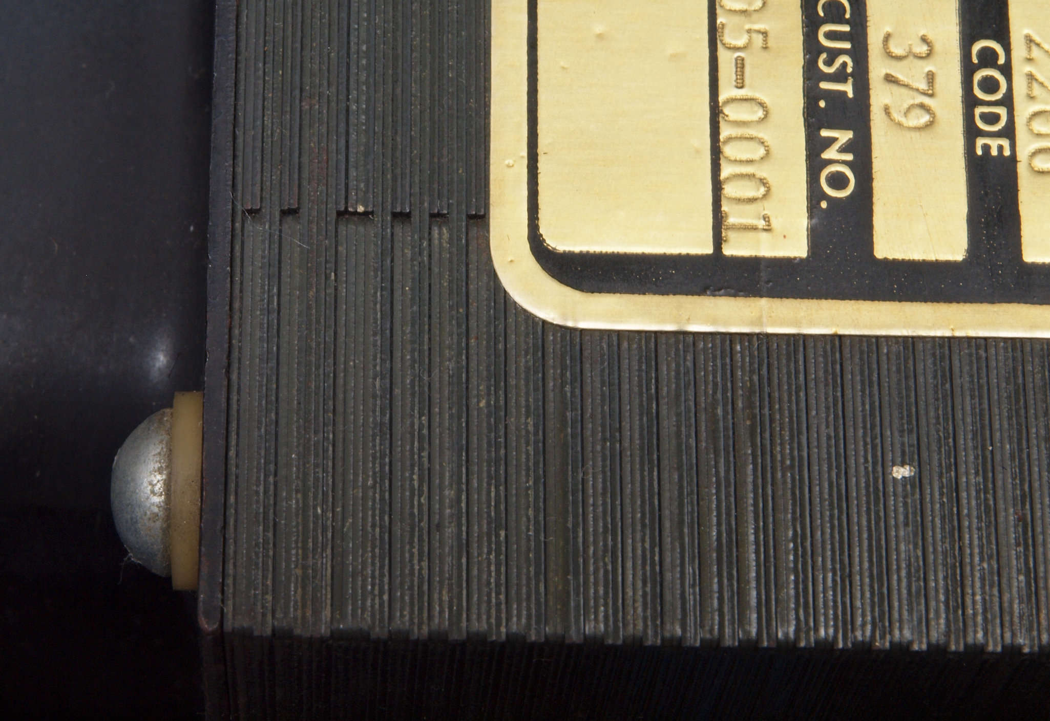 A52. 点検中 上から見る。電源トランスの鉄心見る、2〜4枚の重ね。日本製だと1枚交互が普通。