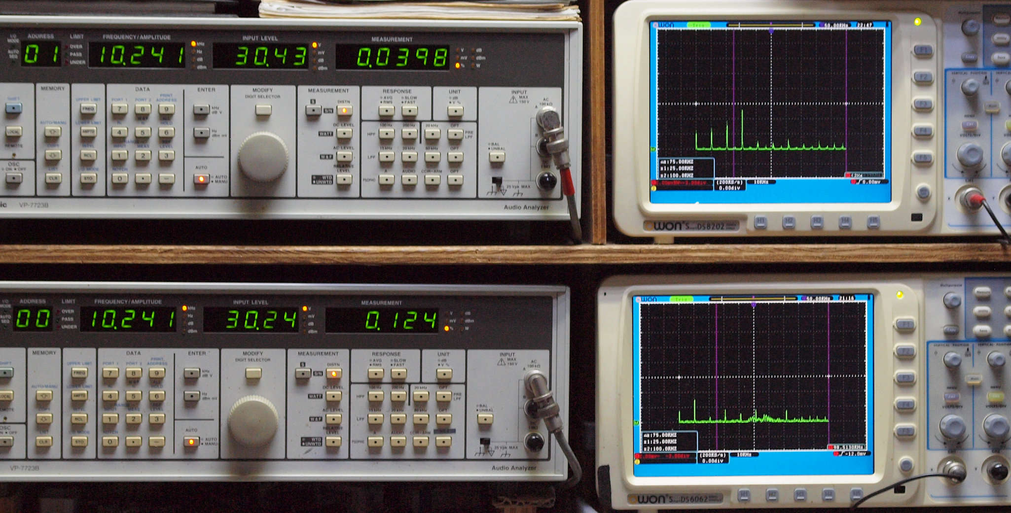上段右端 VP−7723Bの基本波除去出力を「owon SDS8202(200MHZ)」で「FFT分析」表示。