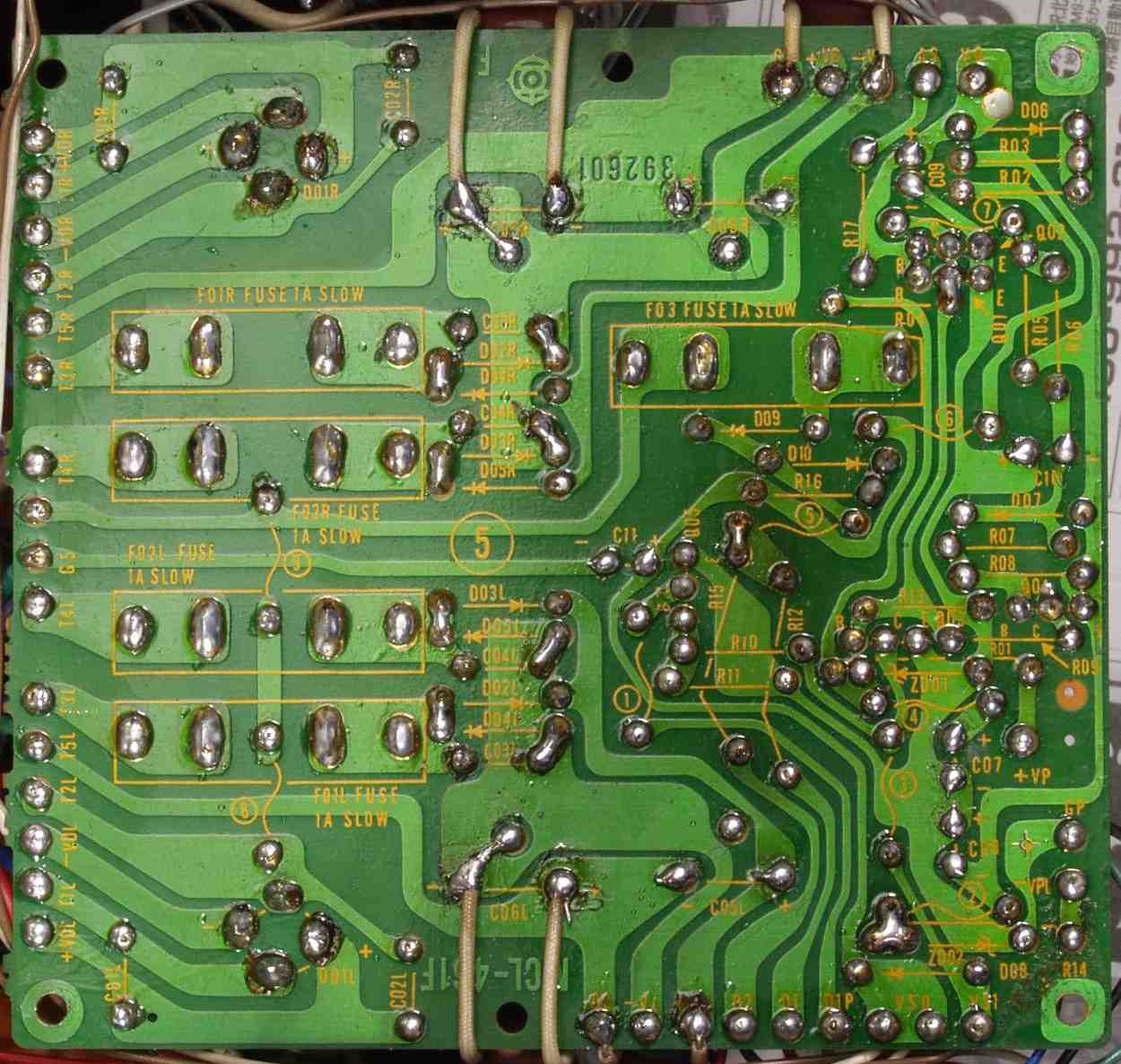 | C2D. 修理(半田補正)後 Lドライブ基板裏 全ての半田をやり修す |