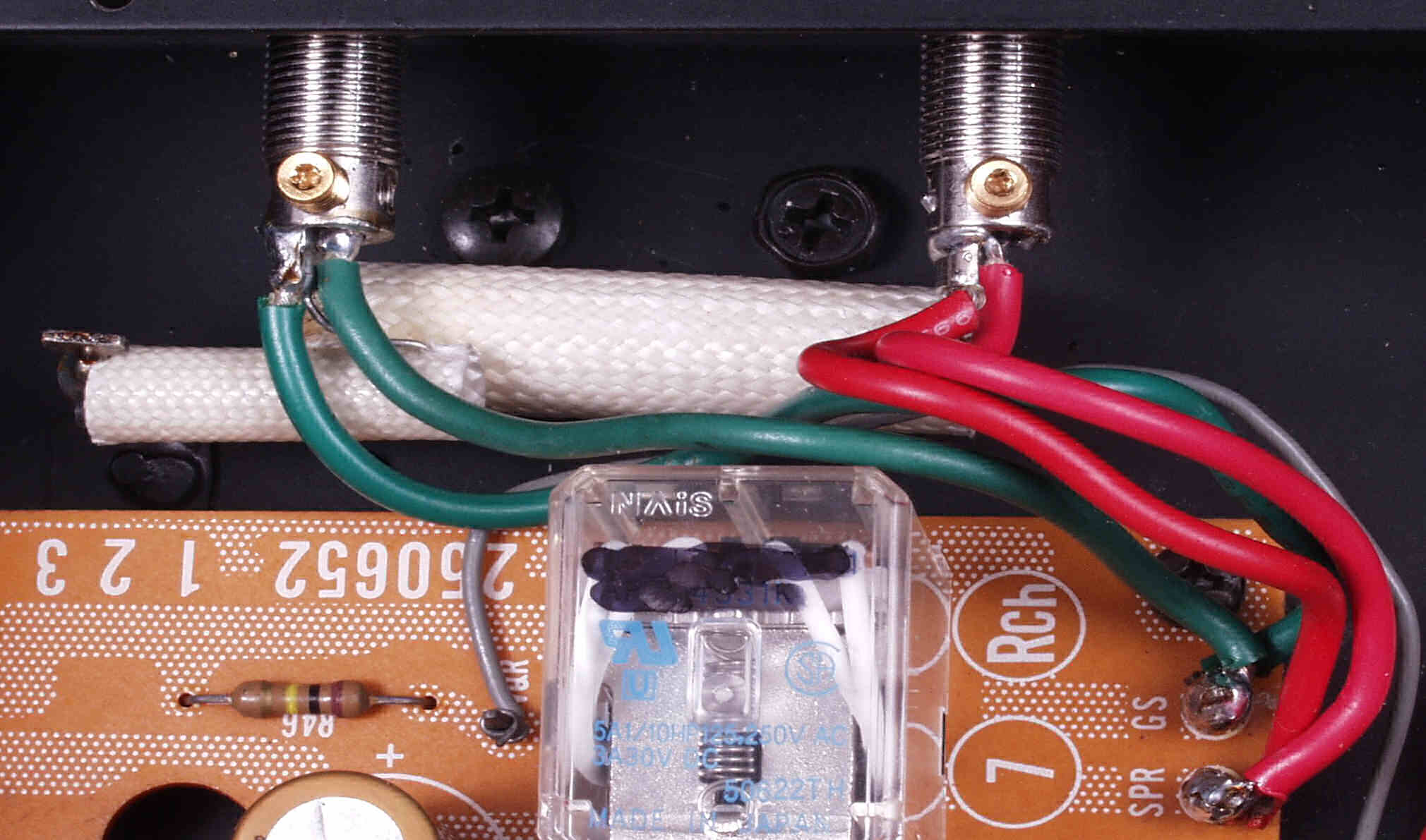 C6G. 修理後 R−SP端子への接続 WBTのネジ止めを生かし、ネジ止め接続+半田接続のW配線にした