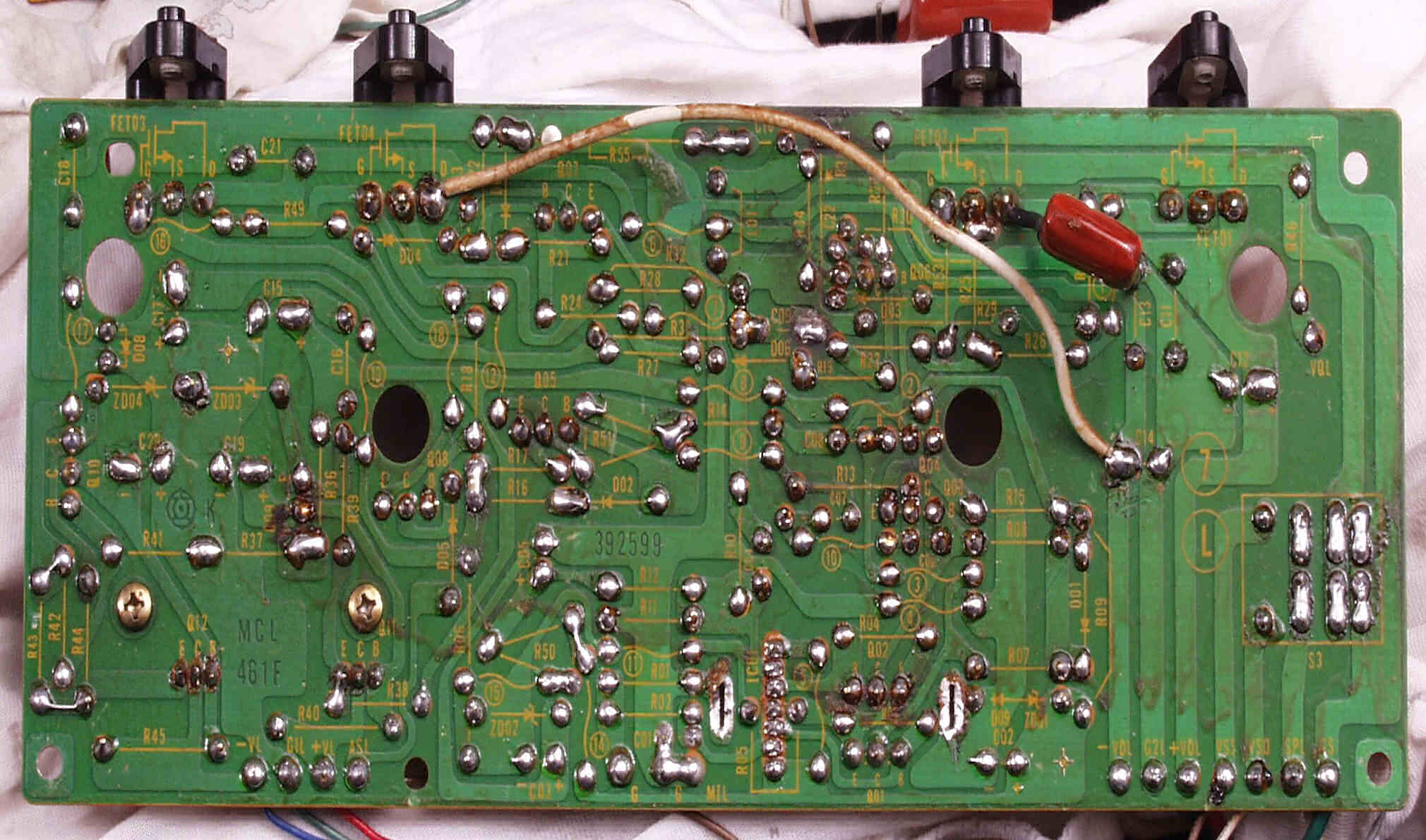 C5E. 修理(半田補正)後 修理後 入力RCA端子基盤裏