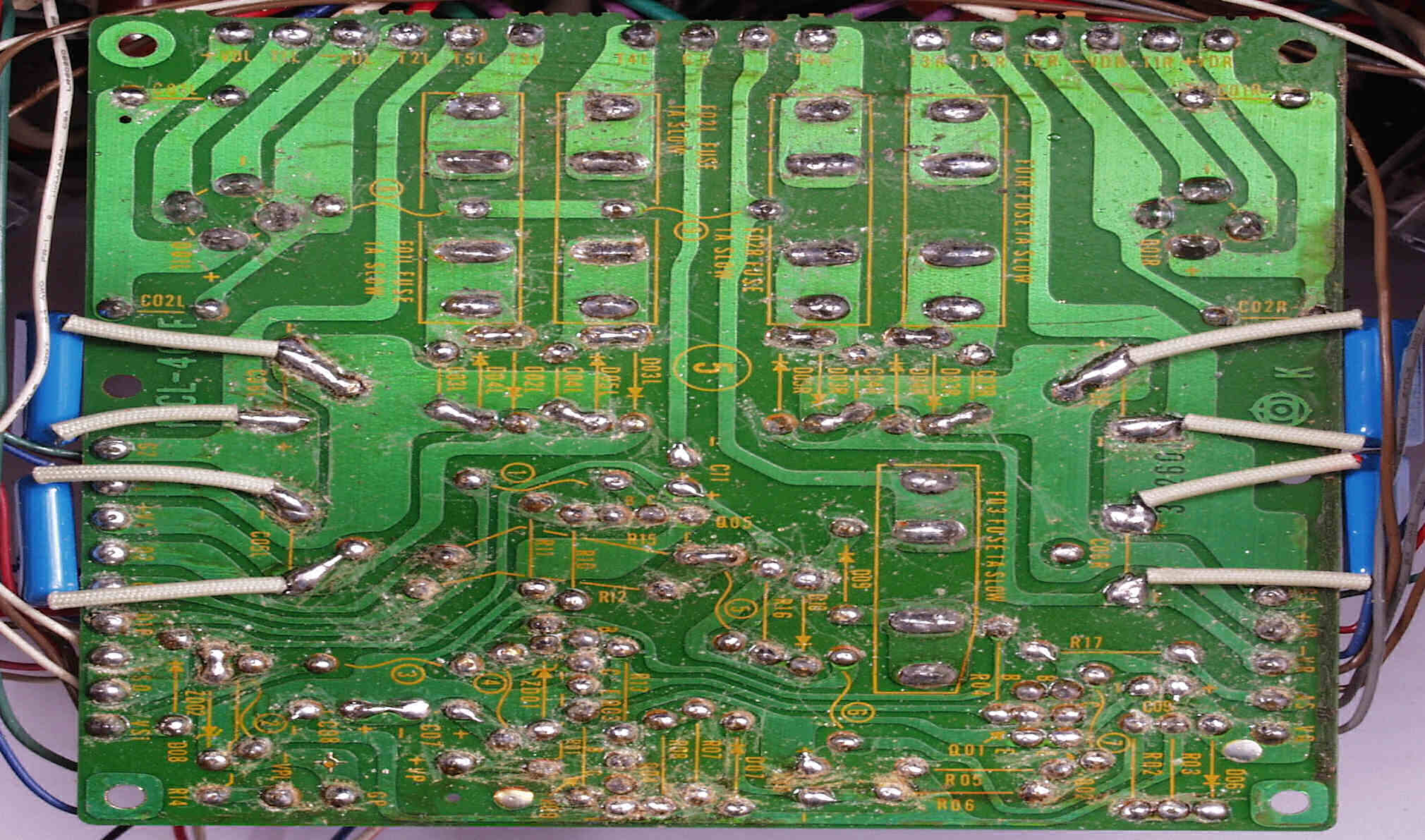C2D. 修理(半田補正)後 Lドライブ基板裏  全ての半田をやり修す