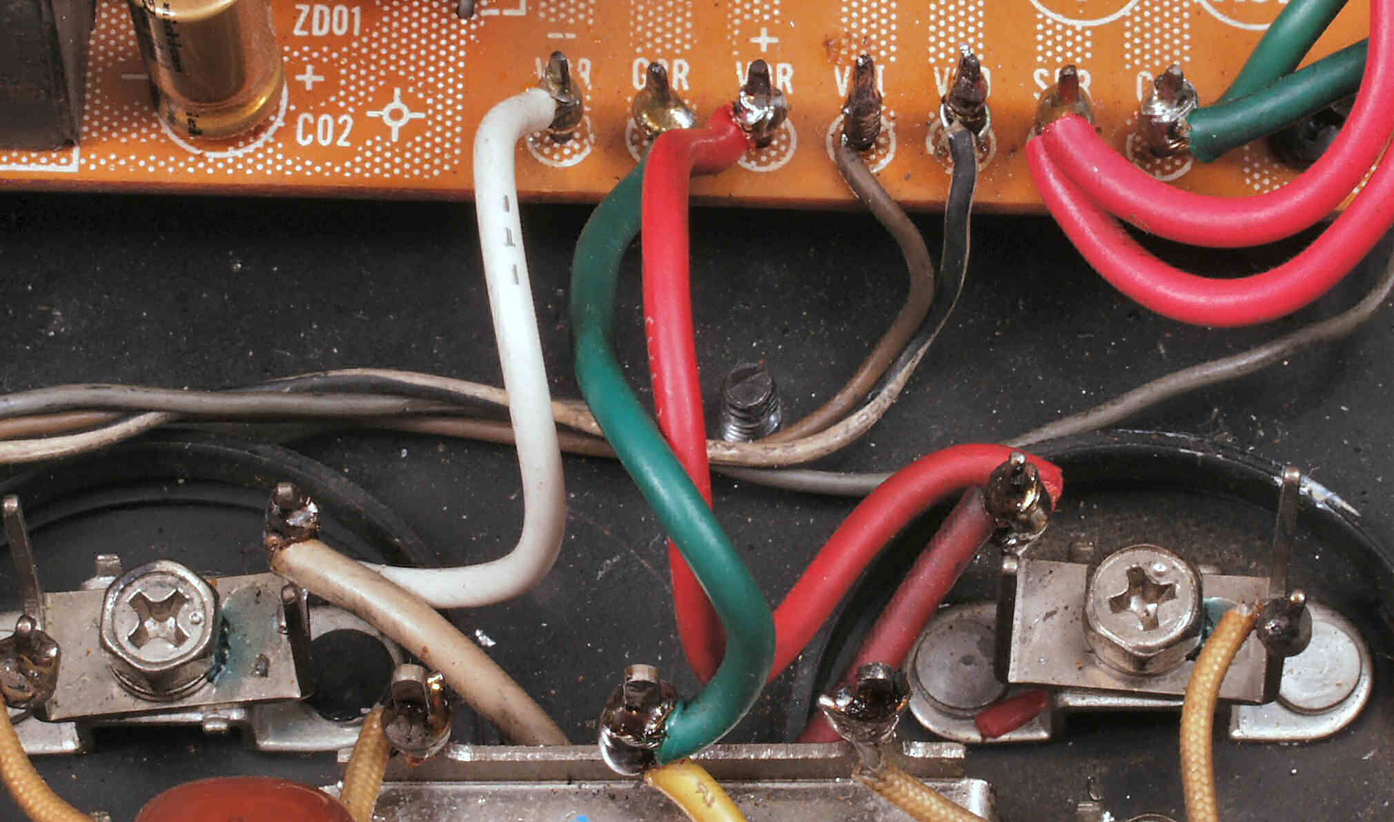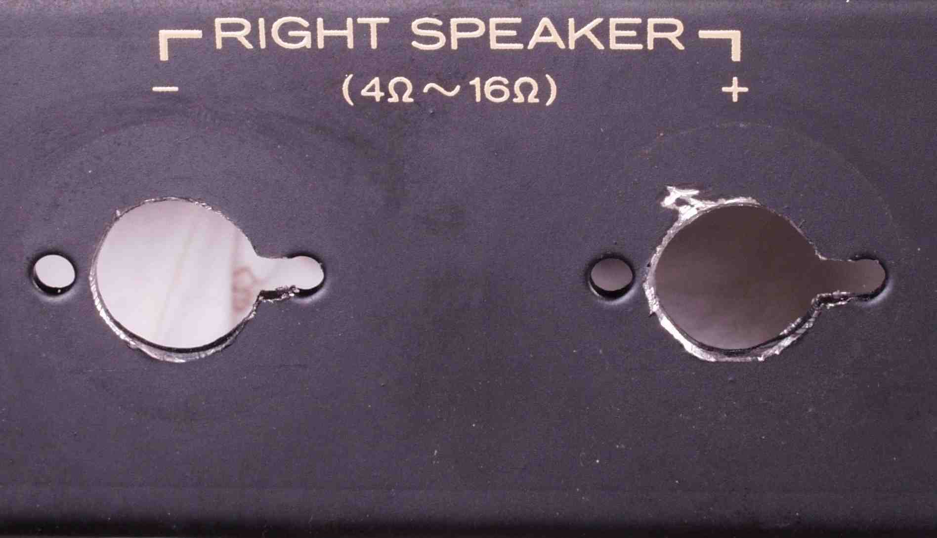 C6G. 修理後 R−SP端子への接続 WBTのネジ止めを生かし、ネジ止め接続+半田接続のW配線にした