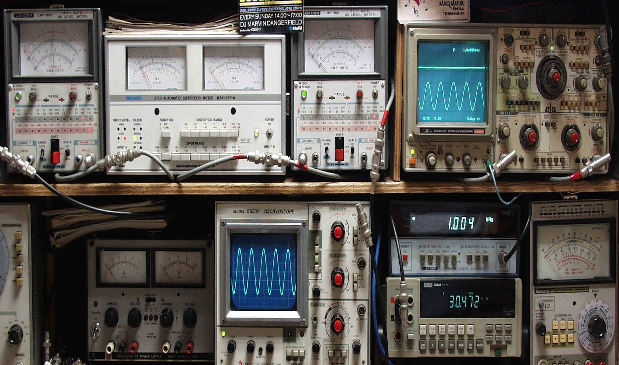 下左端のオーディオ発振器より400HZ・1KHZの信号を出す(歪み率=約0.003%)