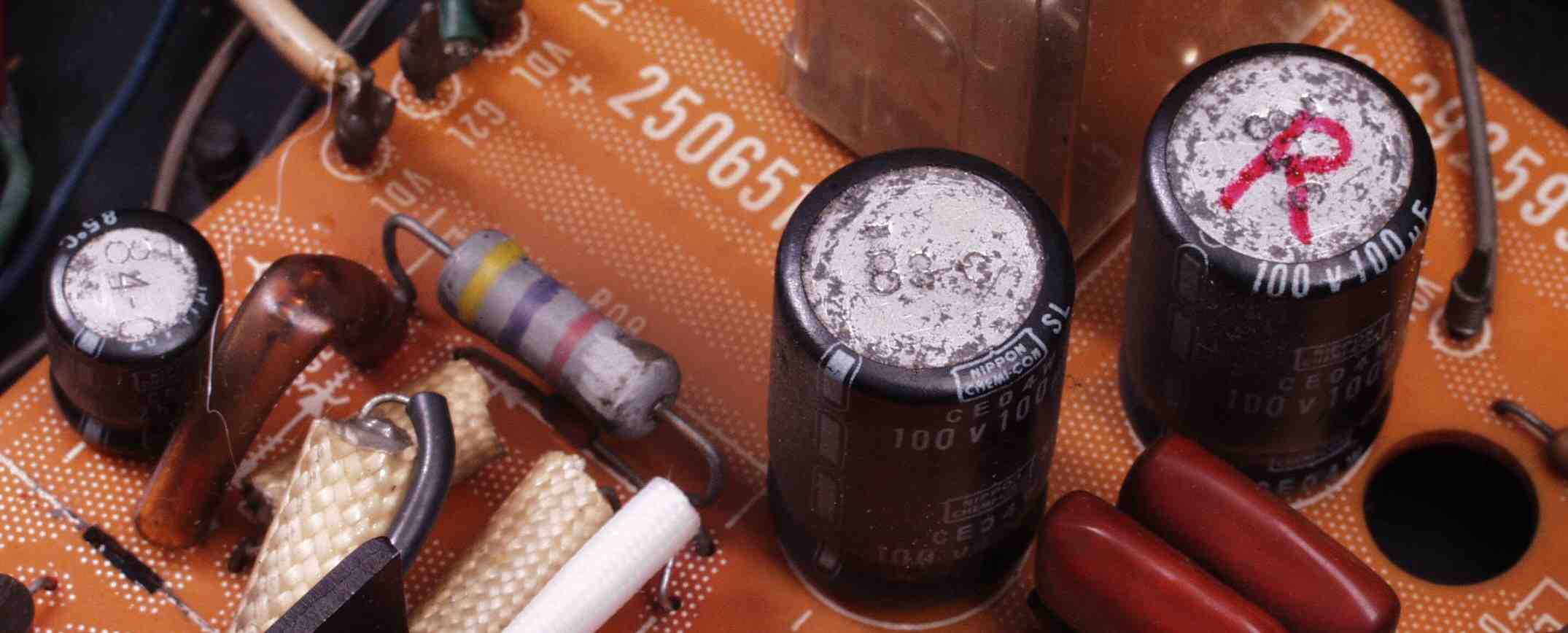フューズ入り抵抗も全部交換 電解コンデンサー9個交換