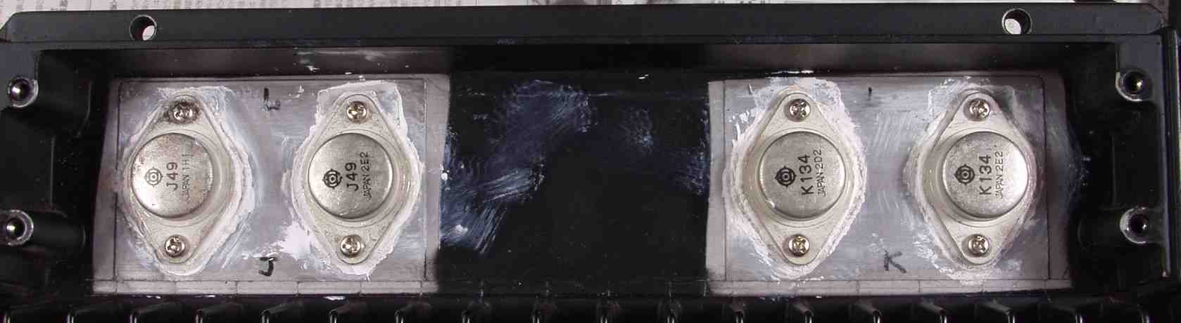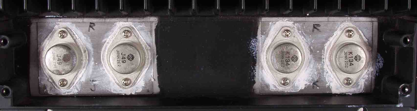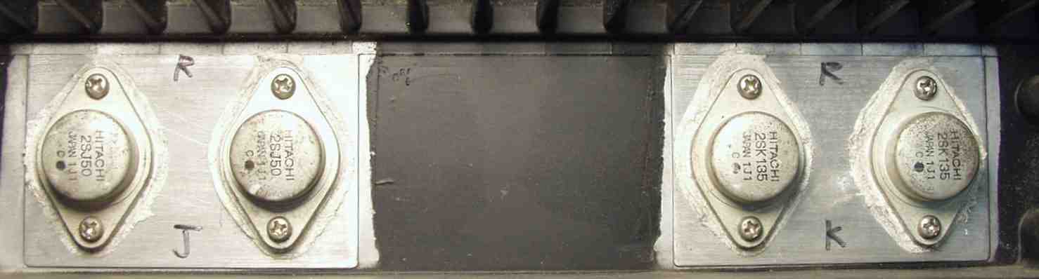 | A−3A. 修理前 R側 終段FET(電界トランジスター) 4個共焼損 |