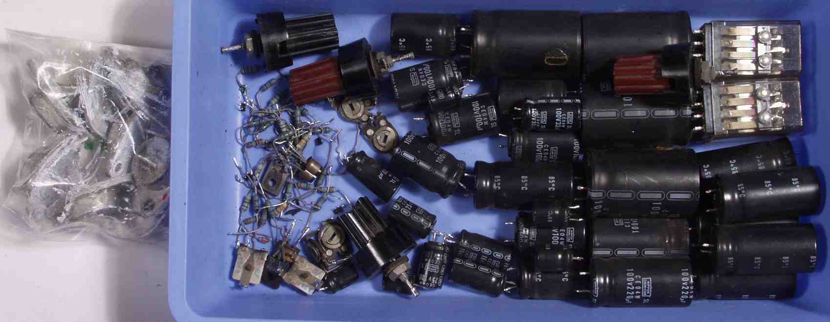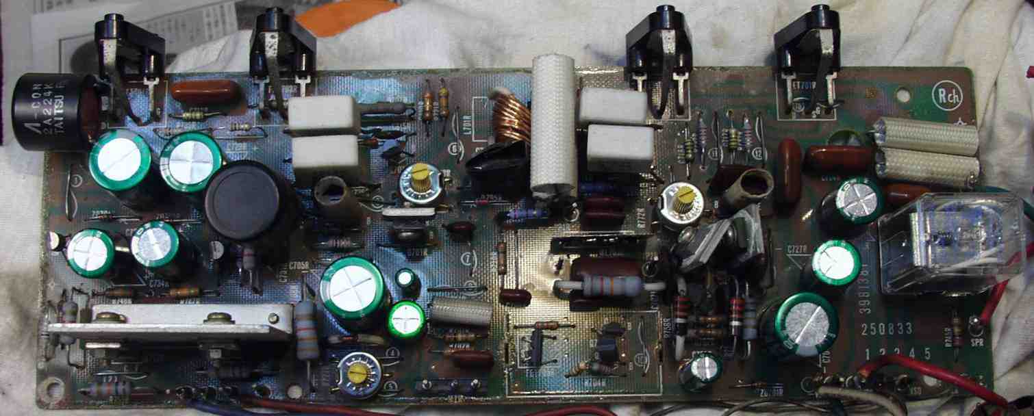 | C−1B. 修理後 Rドライブ基板 初段FET、バランス/バイアス調整用半固定VR、SP接続リレー交換 フューズ入り抵抗も全部交換 全電解コンデンサー交換 モジュール修理 |