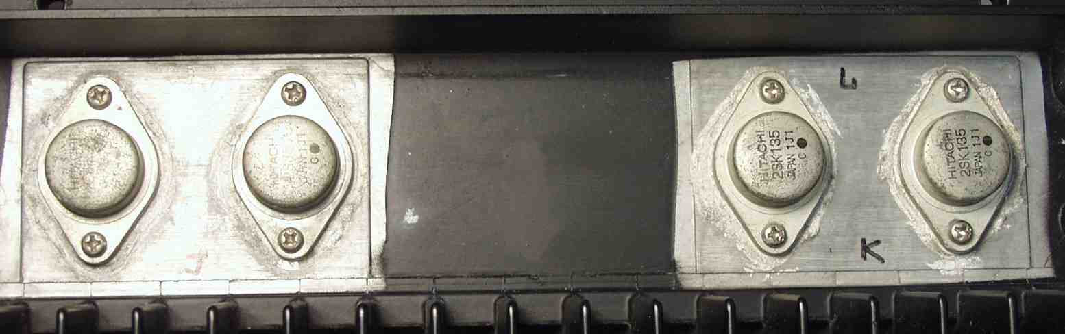 | C−3B. 修理後 R側 終段FET(電界トランジスター)取り付、シリコンを十分塗り取り付ける |