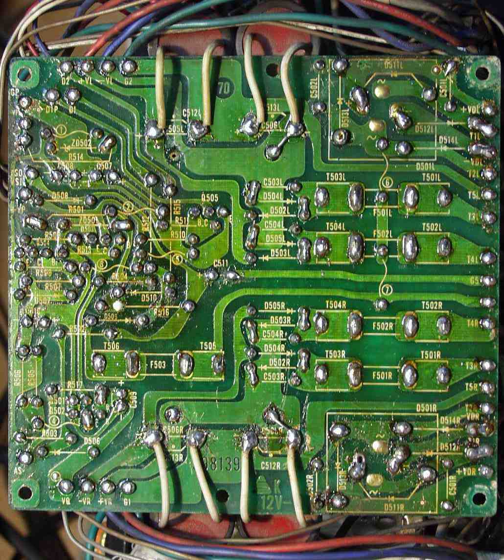 | C−1E. 修理(半田補正)後 Rドライブ基板裏 全ての半田をやり修す |