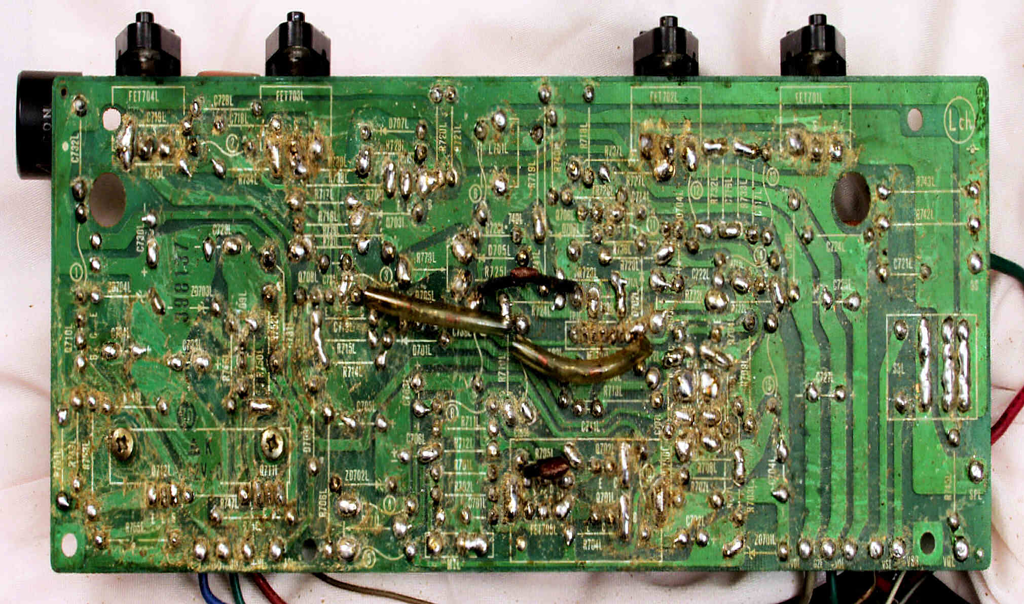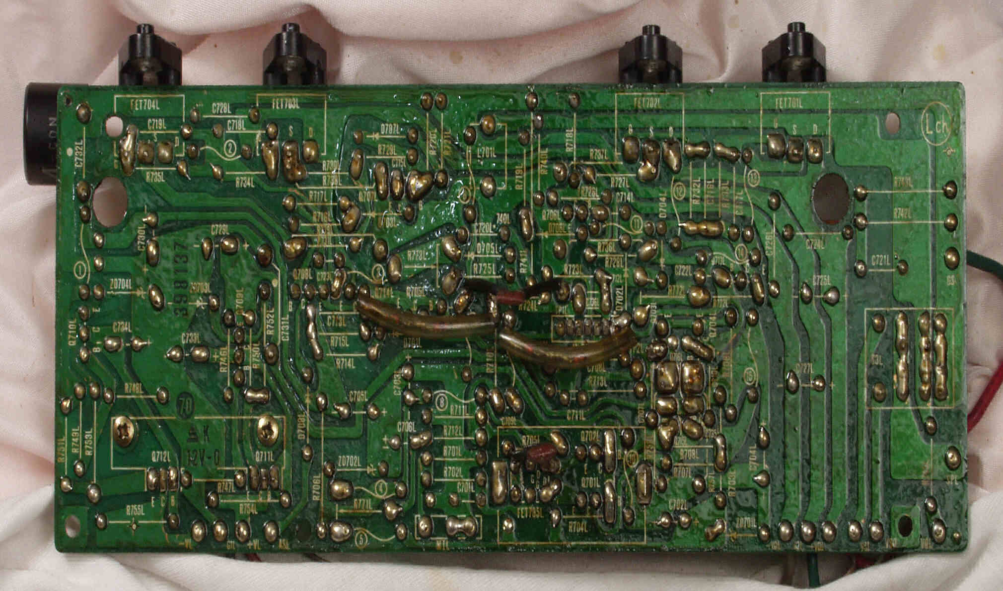 | C2D. 修理(半田補正)後 Lドライブ基板裏 半田を全部やり直す |