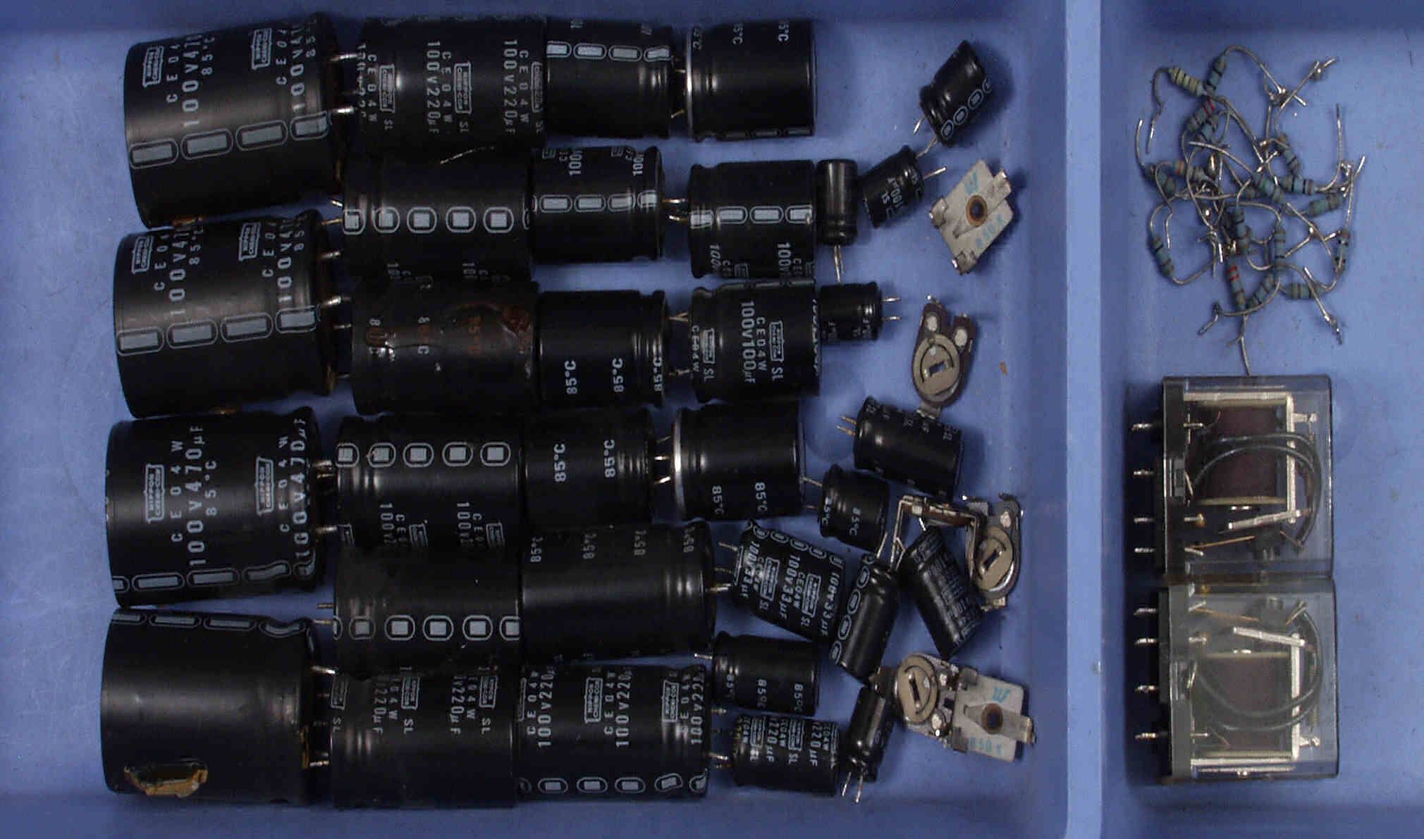 | C3B. 修理後 電源基盤 フュ−ズ入り抵抗全部、電解コンデンサー9個交換 |