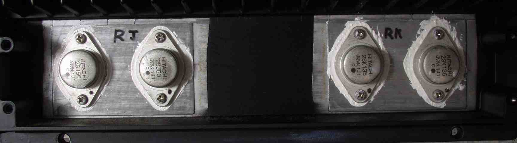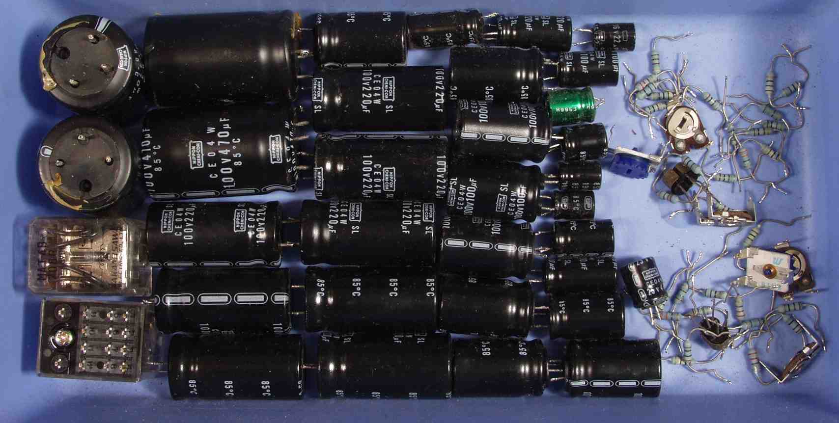 | C1B. 修理後 Rドライブ基板 初段FET、バランス/バイアス調整用半固定VR3個、SP接続リレー交換 フューズ入り抵抗全部、電解コンデンサー11個交換 モジュール修理 |