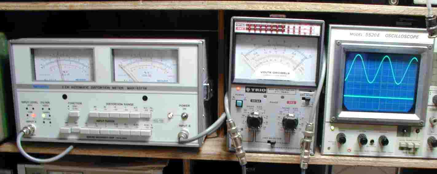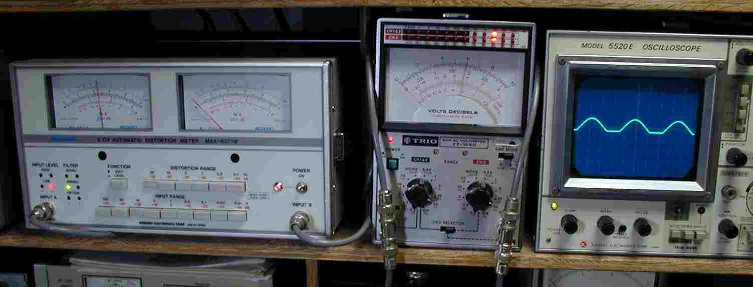 | 14. RL同時、度重なるショウトでコンデンサー等がくたびれているのか歪みが一気に増す。 小生の所の給電事情が良くないのも1因です。普通の家庭で30A契約です。 歪み計のレンジは、最大1%レンジを使用。 |
