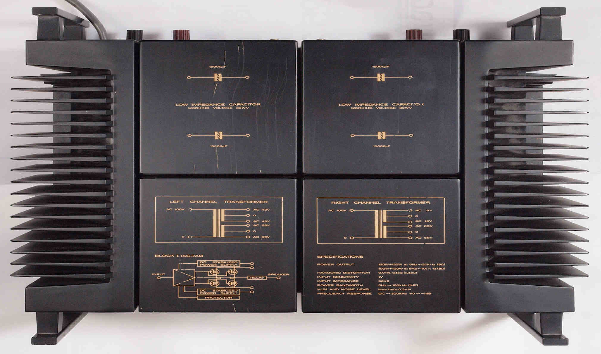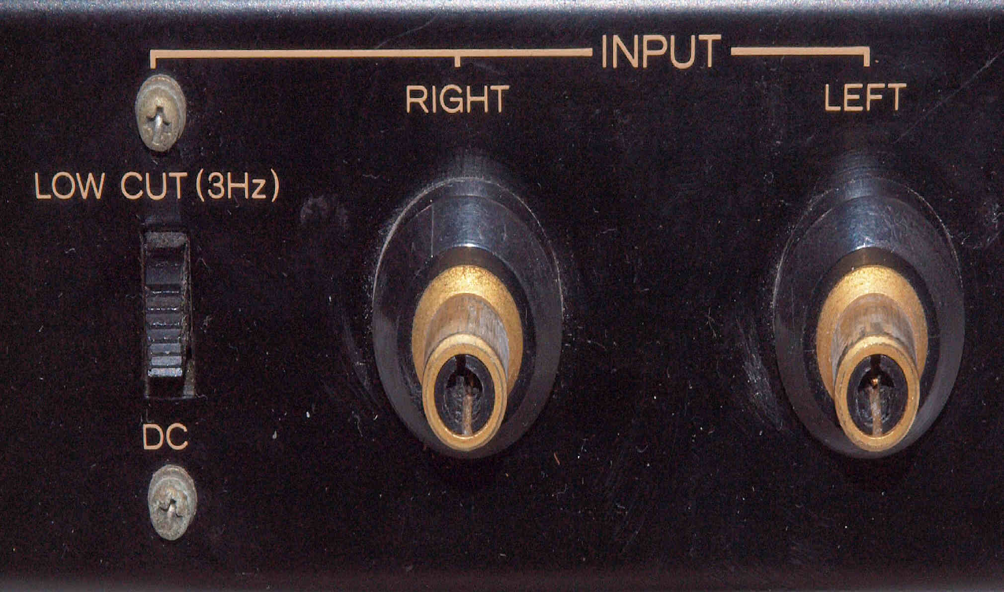 | 注意 このAMPはアースラインが浮いています。 AMPのシャーシにSPの線(アース側)やプリAMPのアースもも接続してはいけません。 RL−SPのアース線も接続(共通)してもいけません、+−の撚りのあるのも使用出来ません。 又、DC(directconnection)入力が可能ですが、絶対に使用しないこと=ここ参照 |