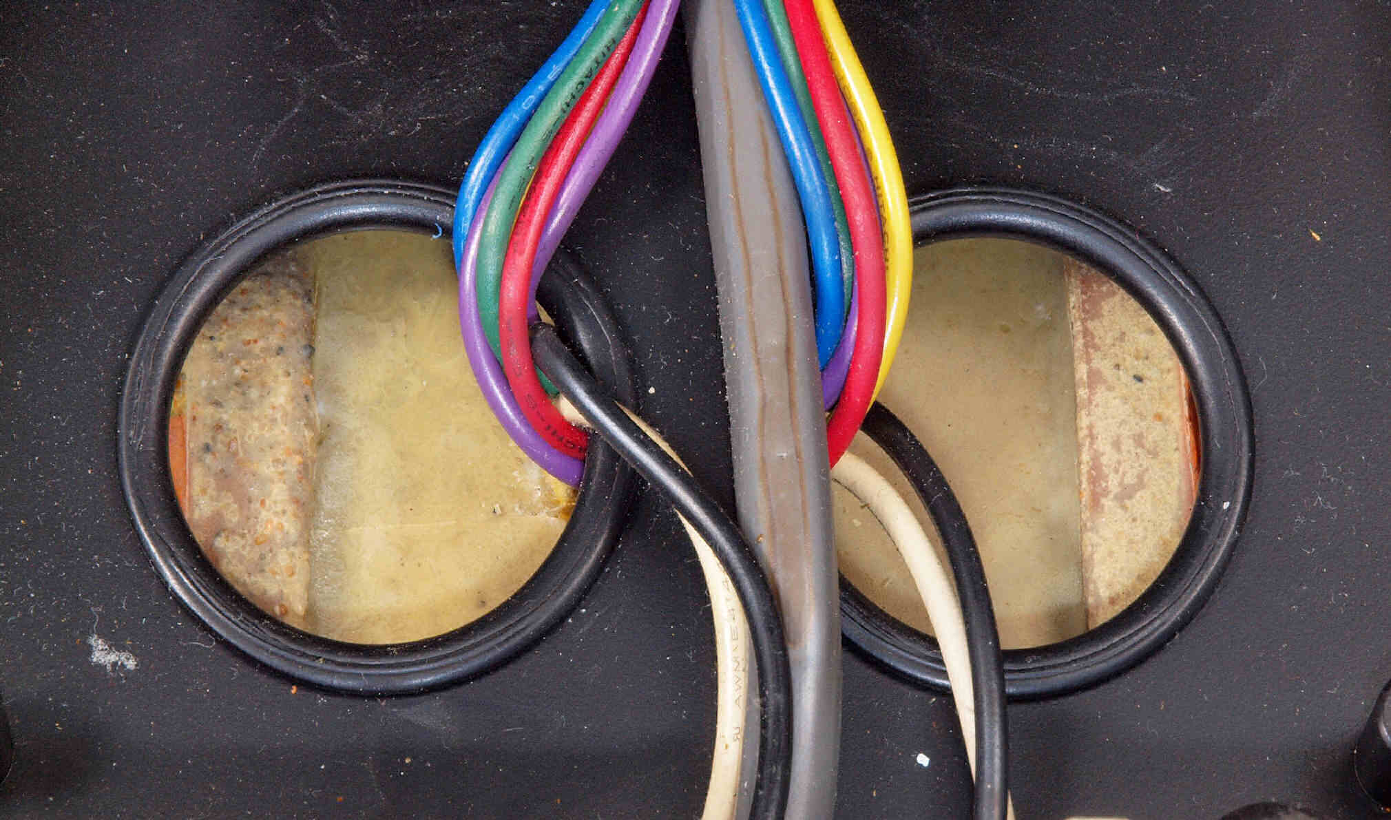 | C65. 修理前 電源ケーブル取り付け部、反対側。 |