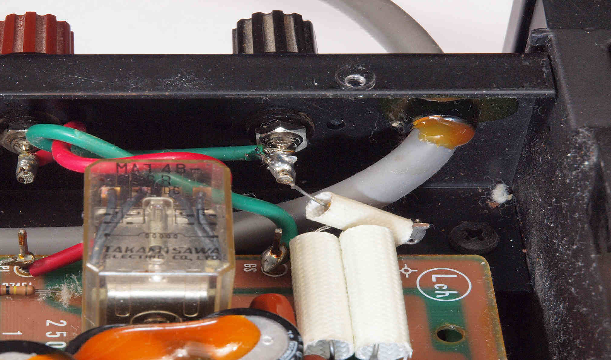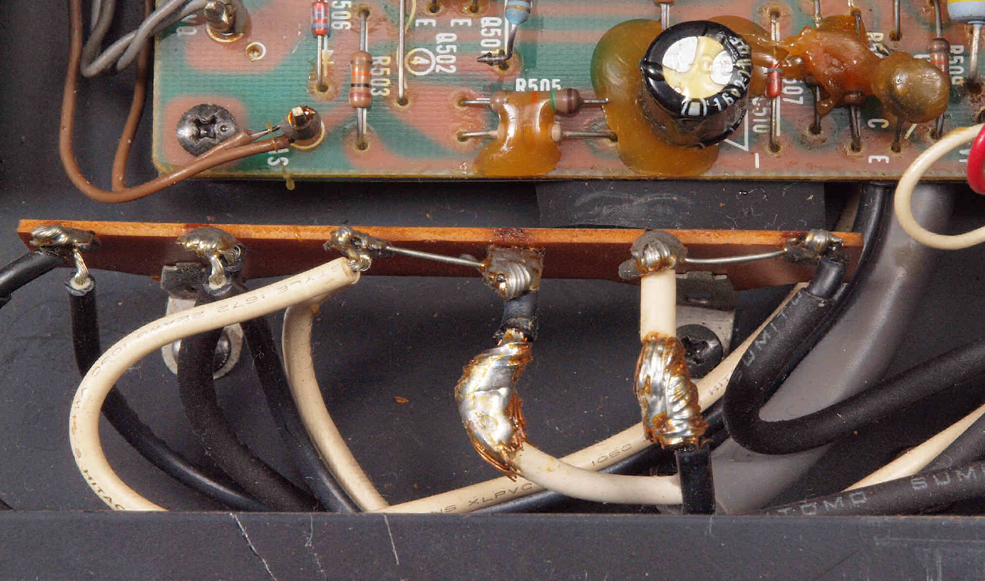 | C73. 修理前 R側ドライブ基板−電源基板へのラッピング線 |