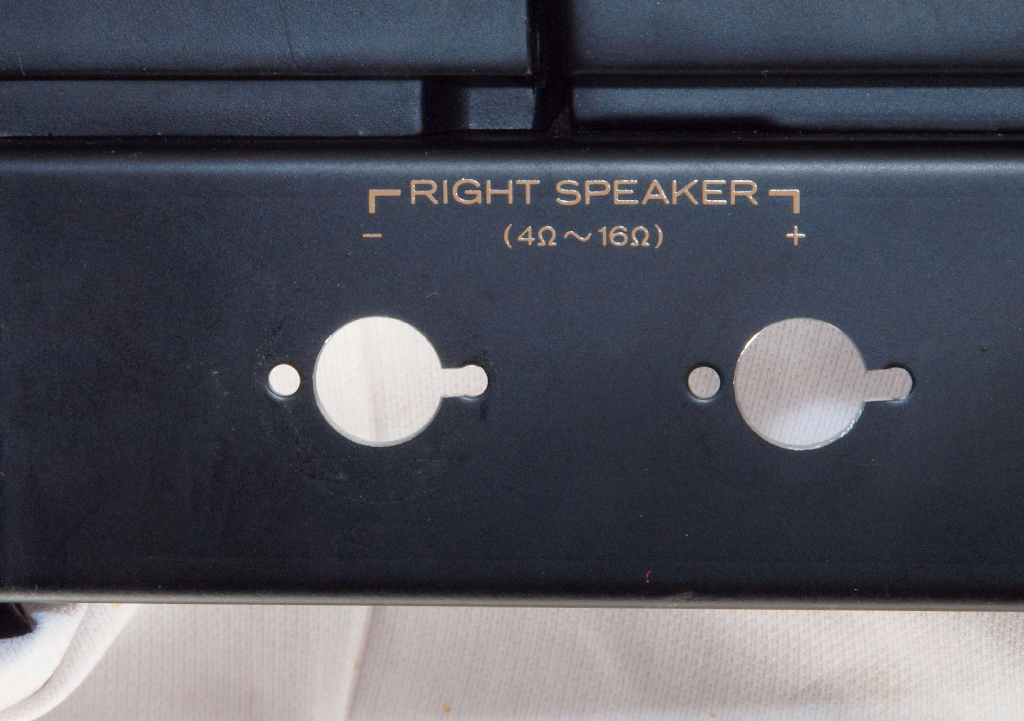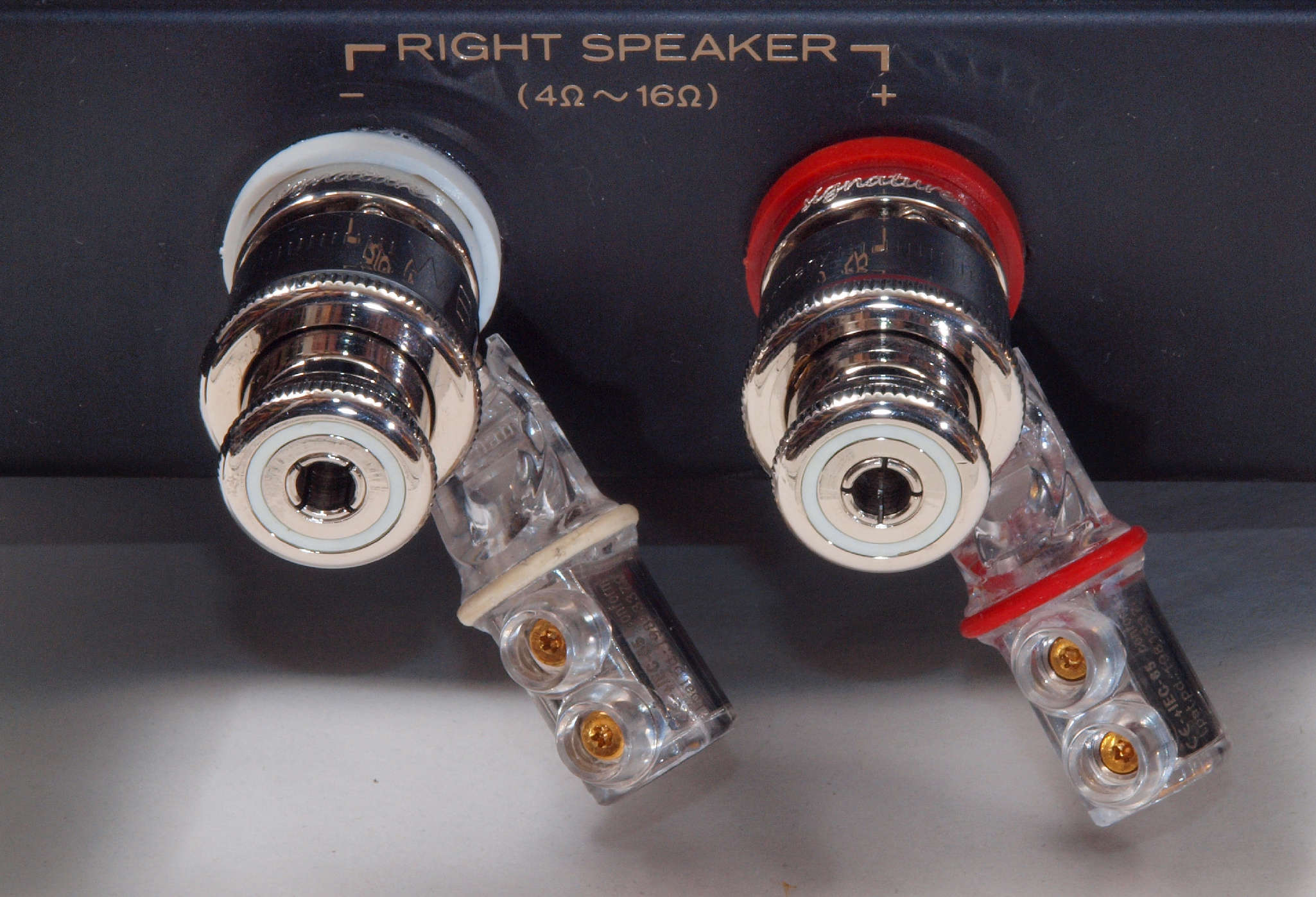 | C86. 修理後 R−SP端子裏配線。 WBTのネジ止めを生かし、ネジ止め接続+半田接続のW配線にした。理由はこちら |