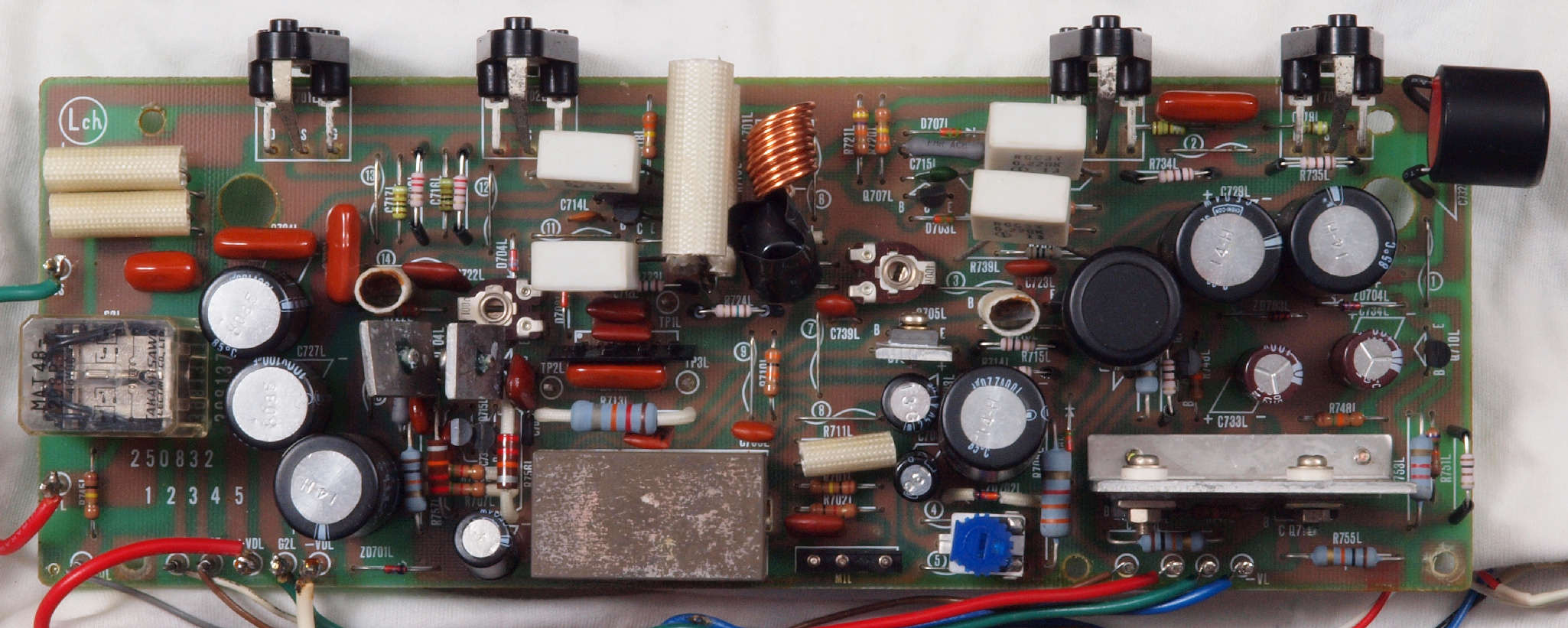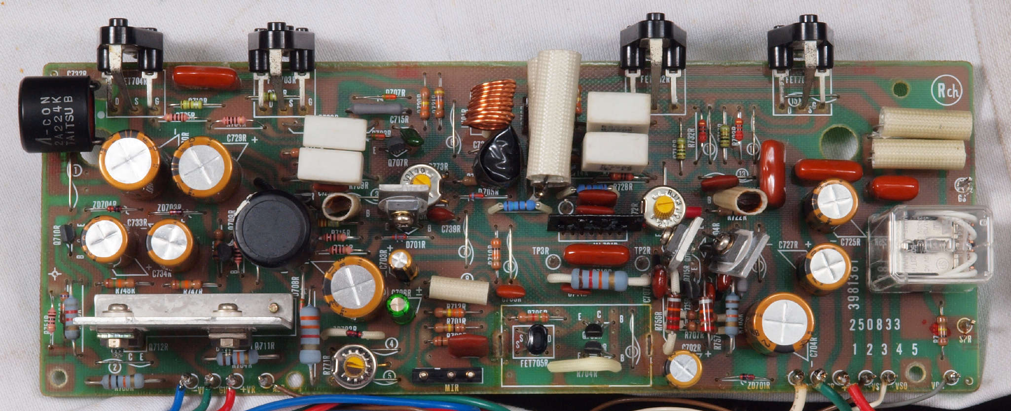 | C43. 修理後 RLモジュール裏。 TR(トランジスター)交換後軽くラッカーを吹きました。 |