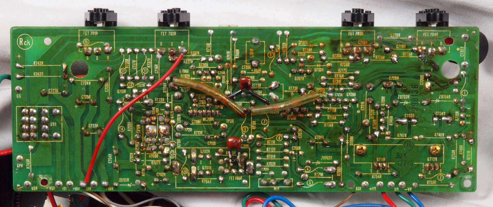 | C. 修理状況。 画像をクリックすると、大きく(横幅2050ドット)表示されます。 C11. 修理前 R側ドライブ基板 |