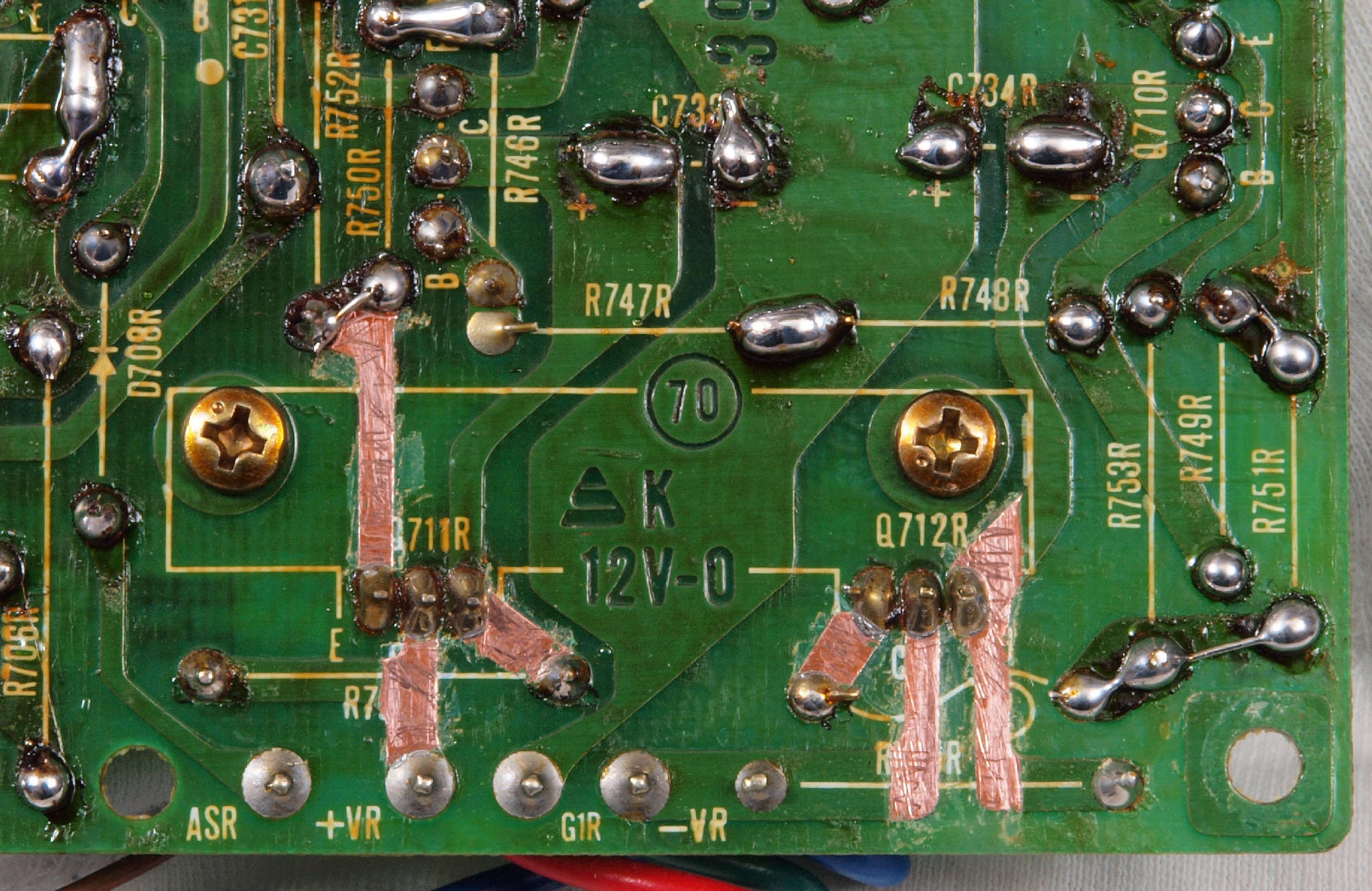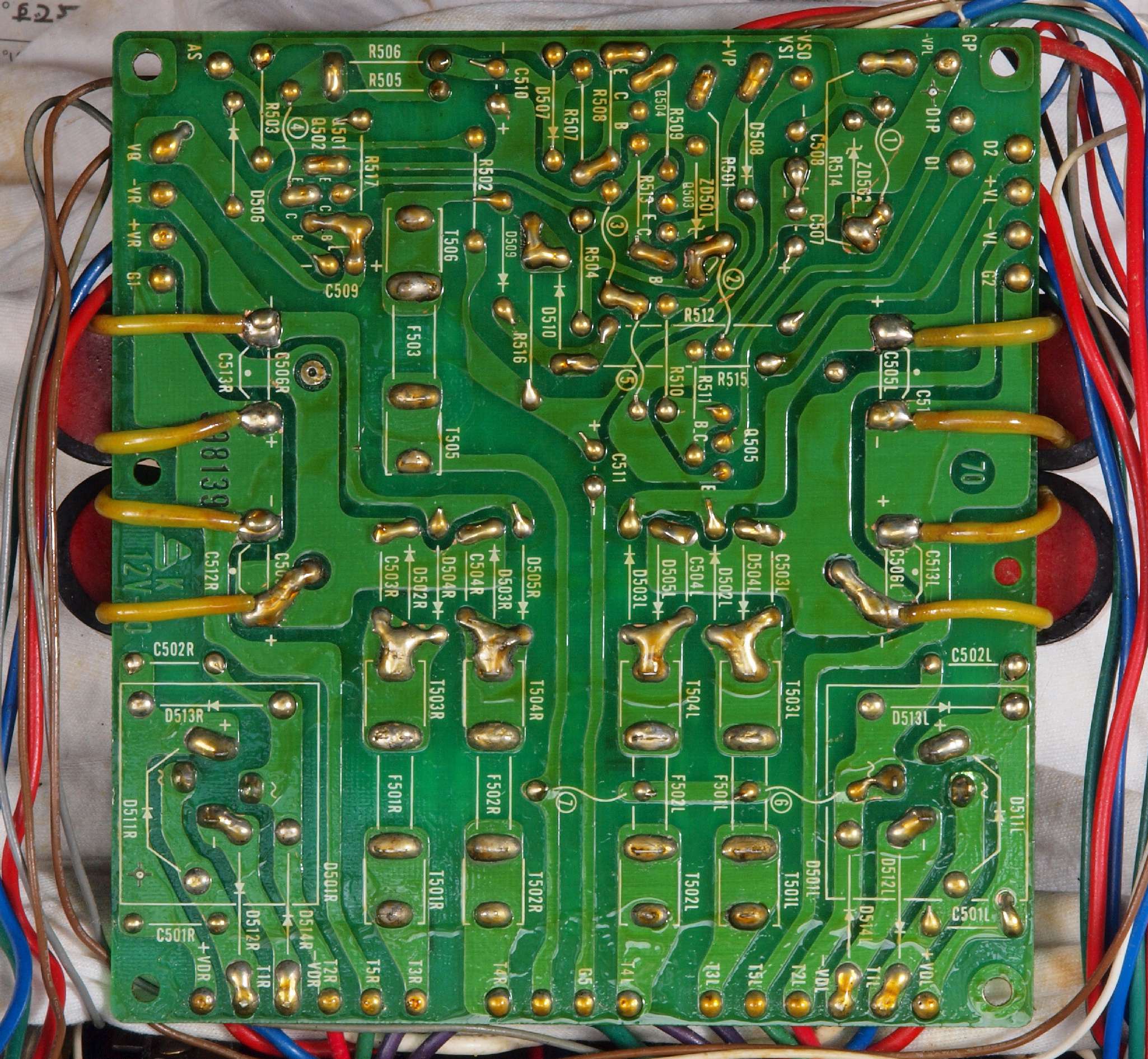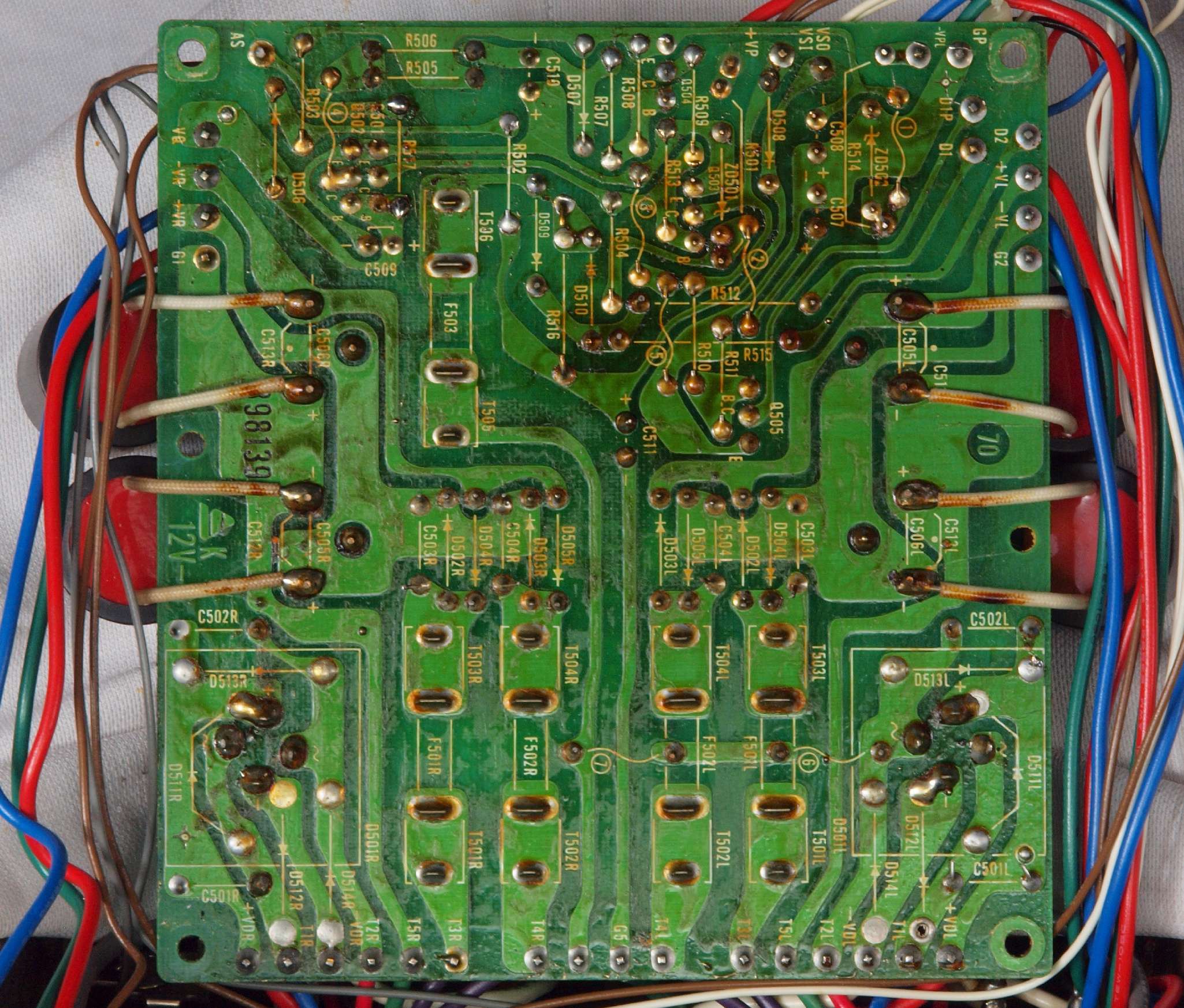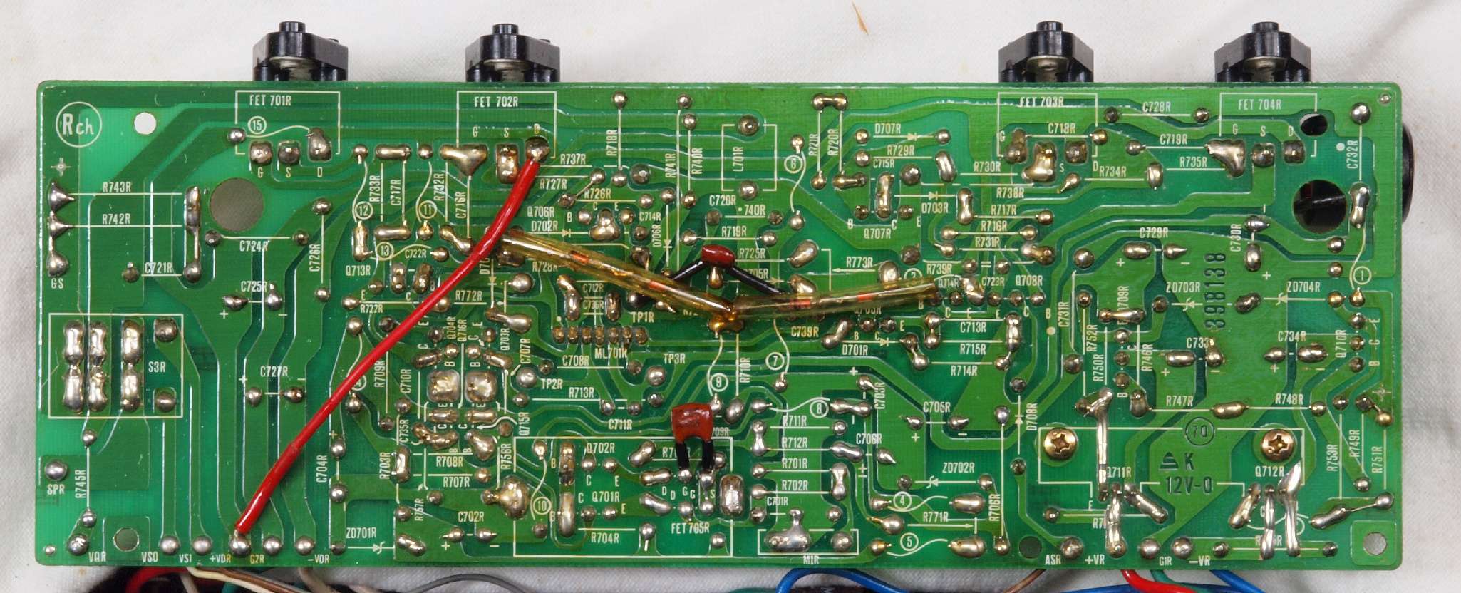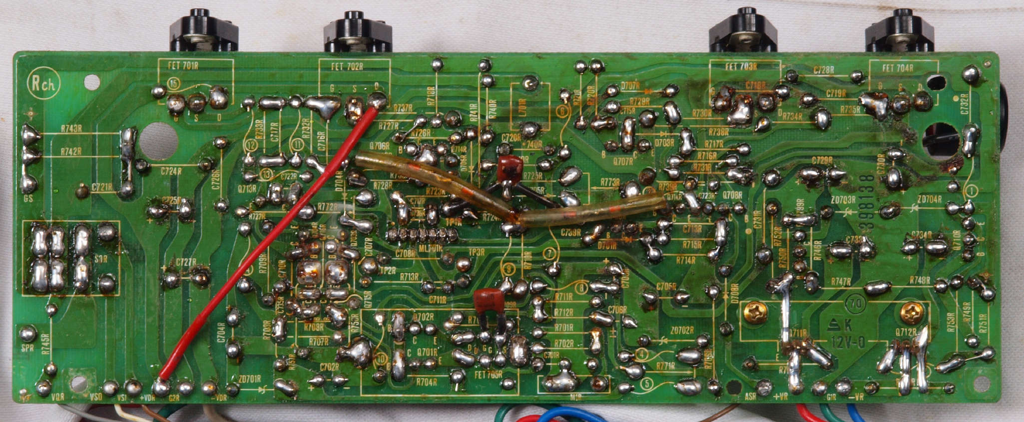 | C15. 修理(半田補正)後 R側ドライブ基板裏 半田を全部やり直す。 普通はこれで完成。 |