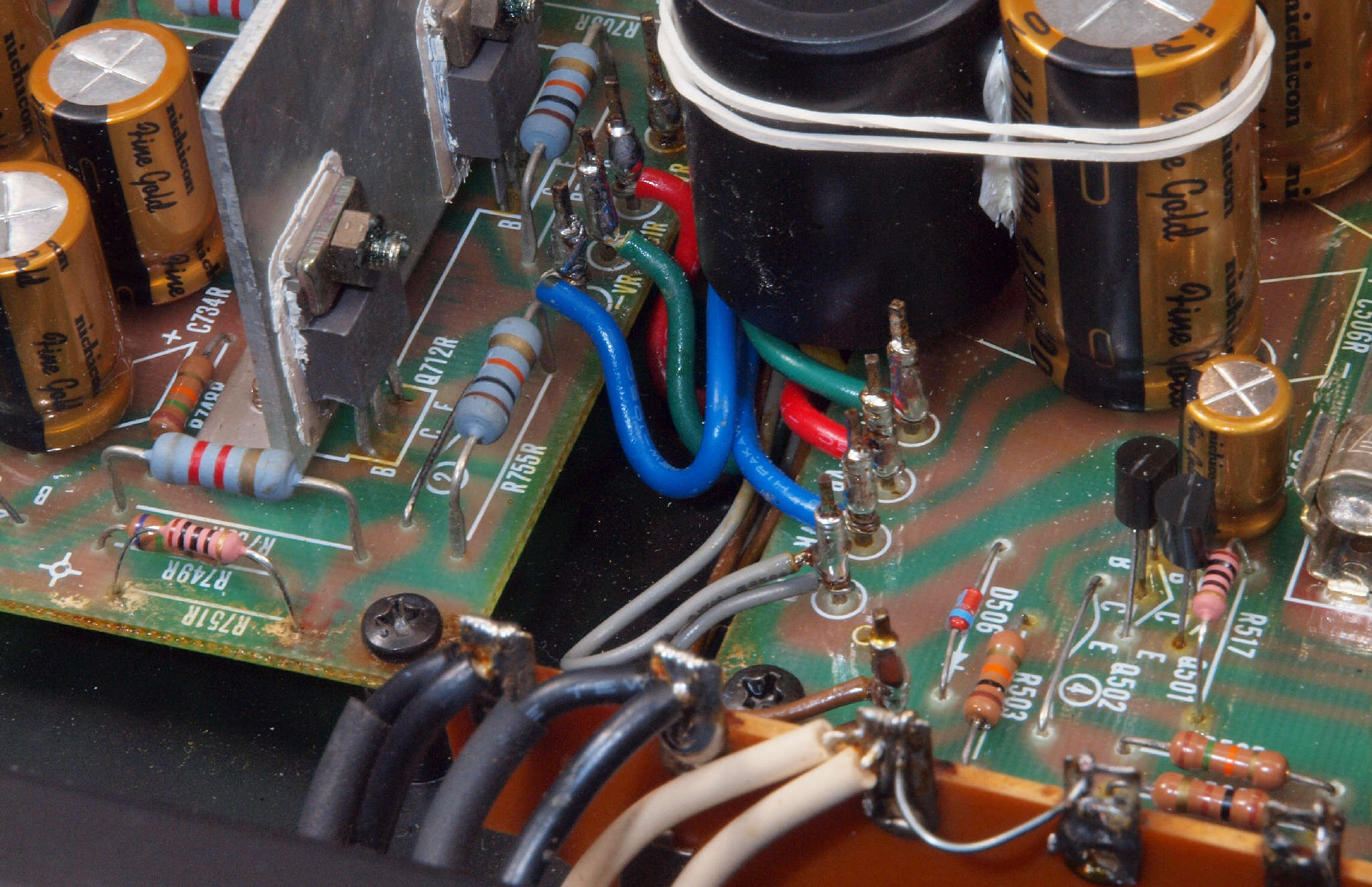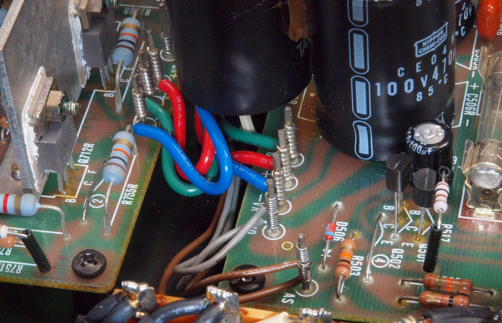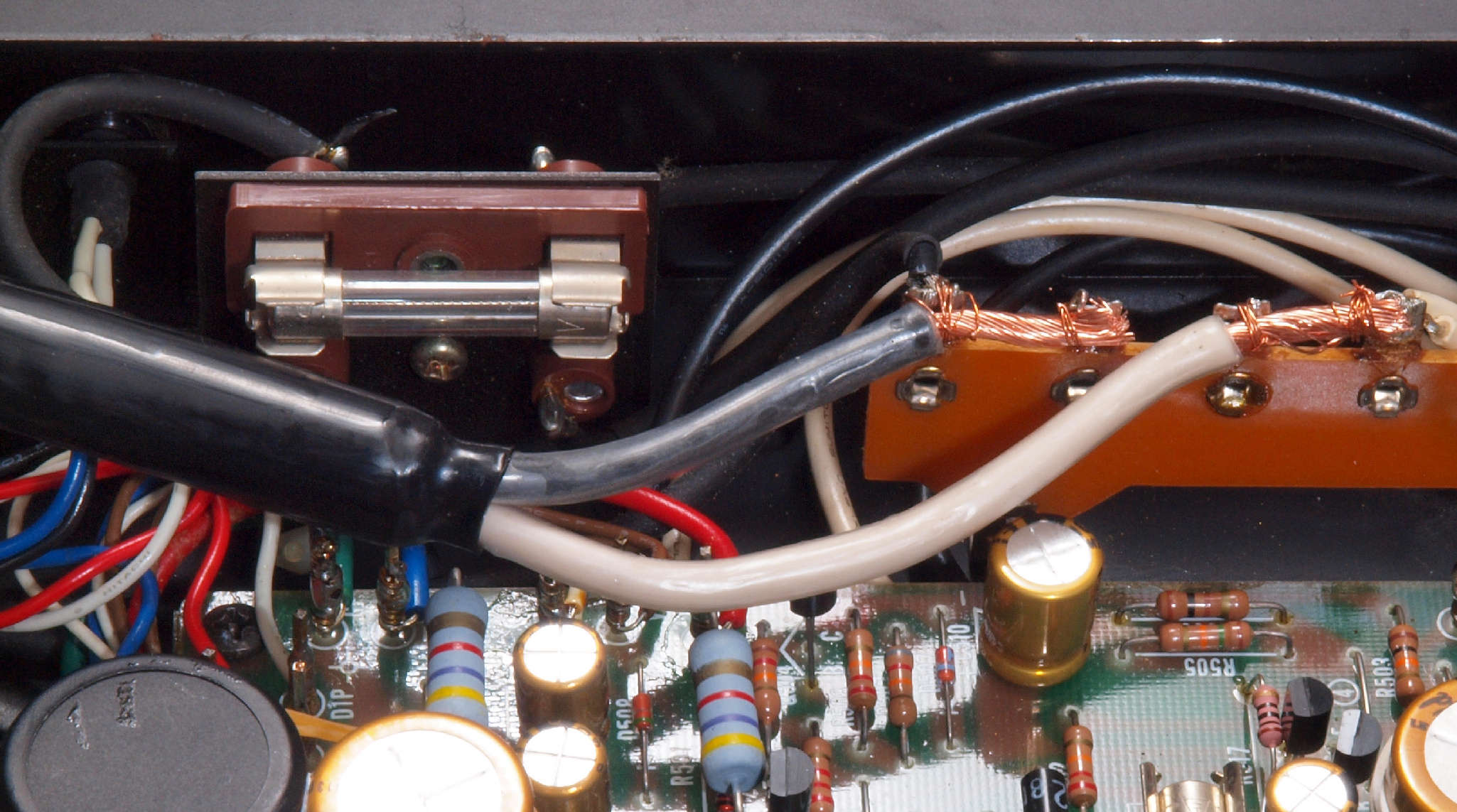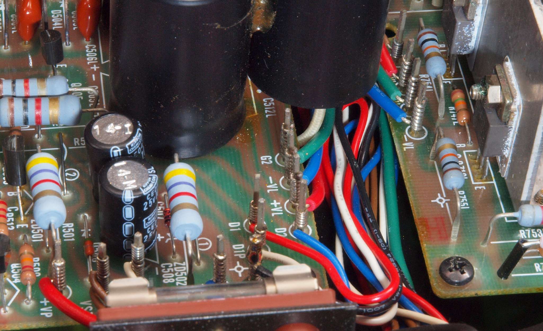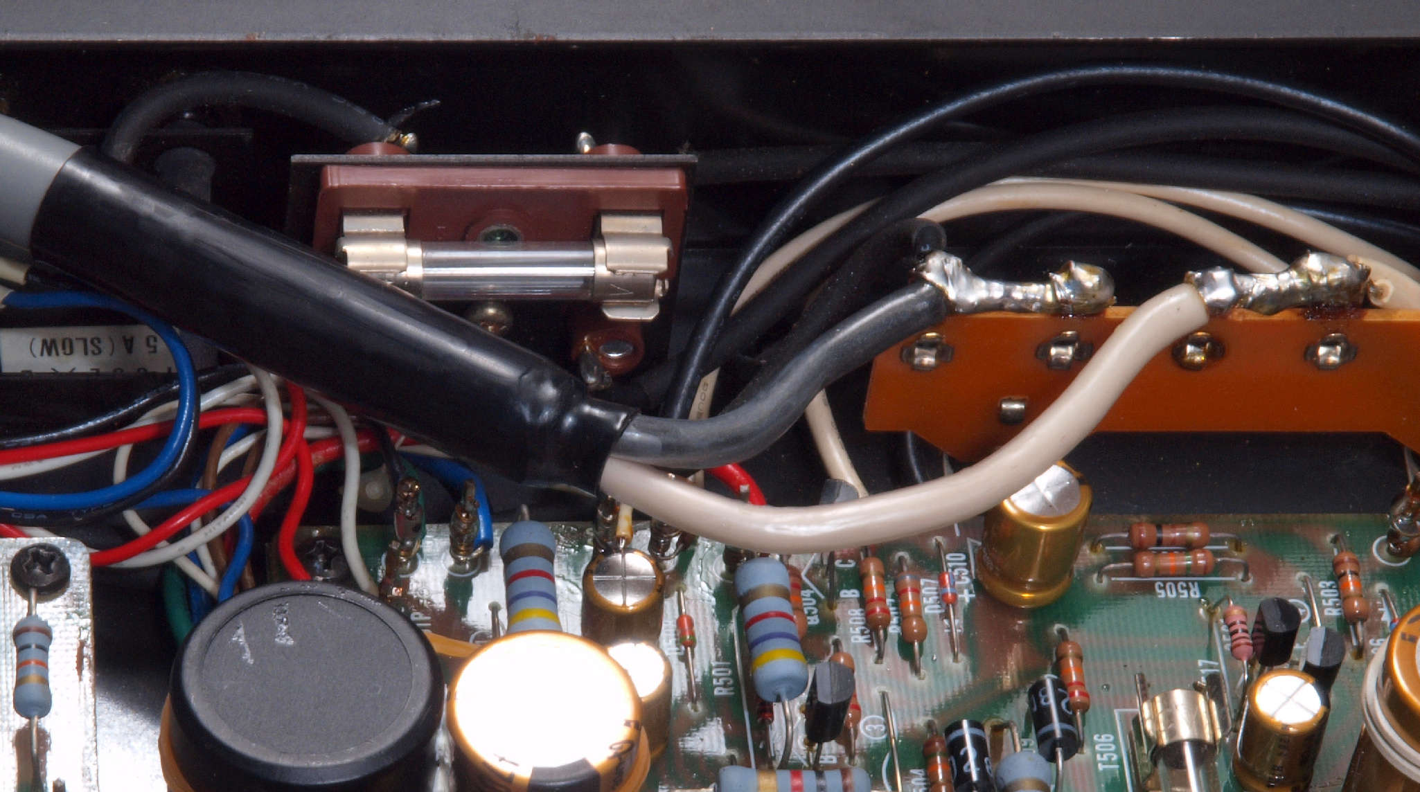 | CA5. 修理前 R側ドライブ基板−電源基板へのラッピング線 |