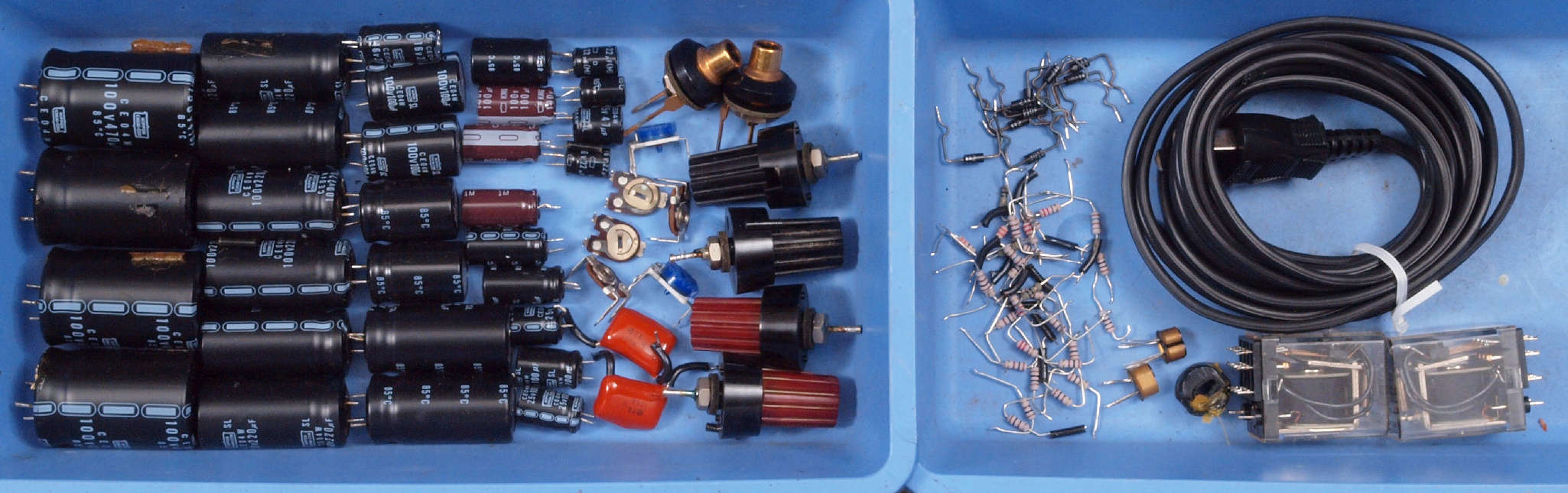 | A41. 点検中 電解コンデンサー外観比較、100μ/100V |