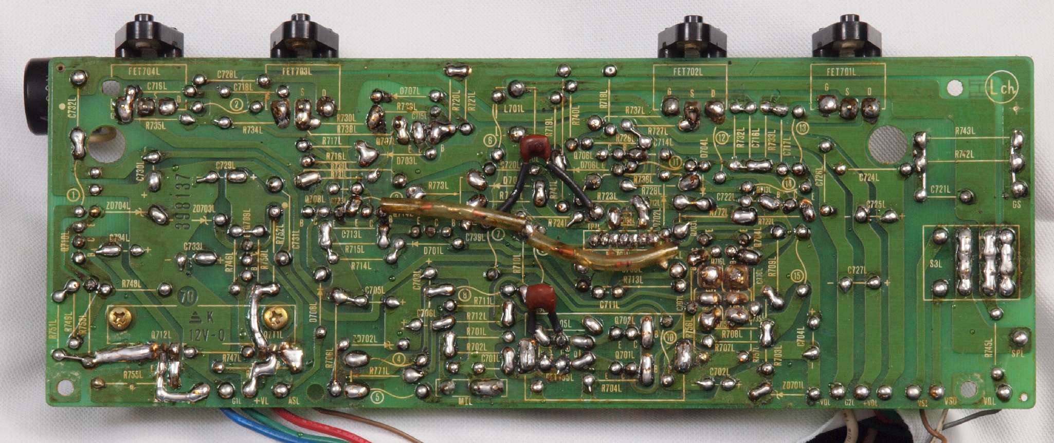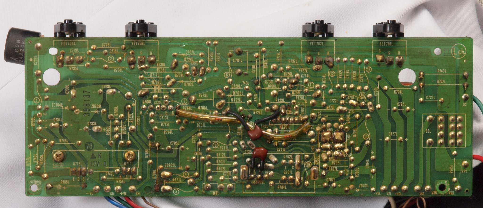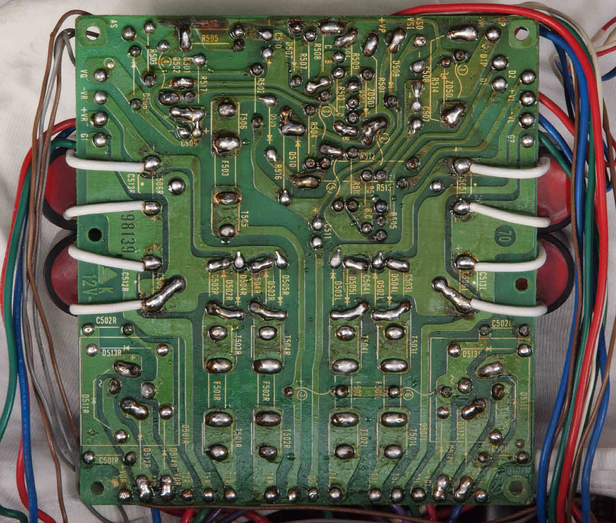 | C15. 修理(半田補正)後 R側ドライブ基板裏 半田を全部やり直す。 普通はこれで完成。 |