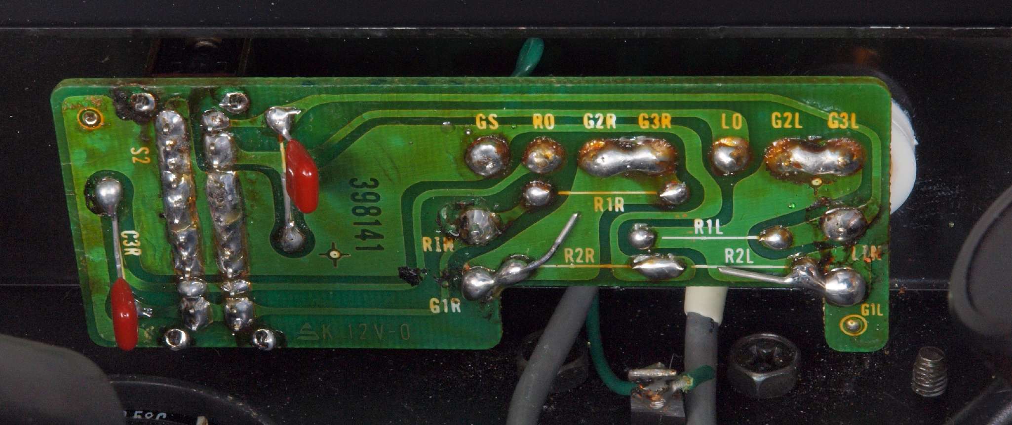 | C67. 修理(半田補正)後 RCA端子基板裏 半田を全部やり直す フイルムコンデンサー2個増設 |