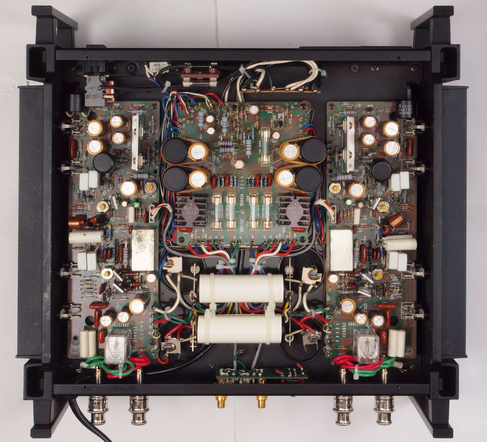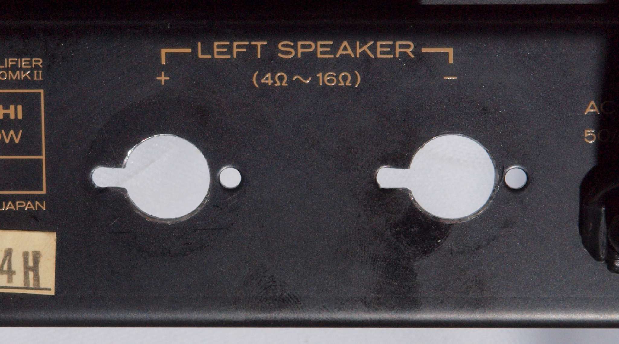 | 注意 このAMPはアースラインが浮いています。 AMPのシャーシにSPの線(アース側)やプリAMPのアースもも接続してはいけません。 RL−SPのアース線も接続(共通)してもいけません、+−の撚りのあるのも使用出来ません。 又、DC(directconnection)入力が可能ですが、絶対に使用しないこと=ここ参照 |