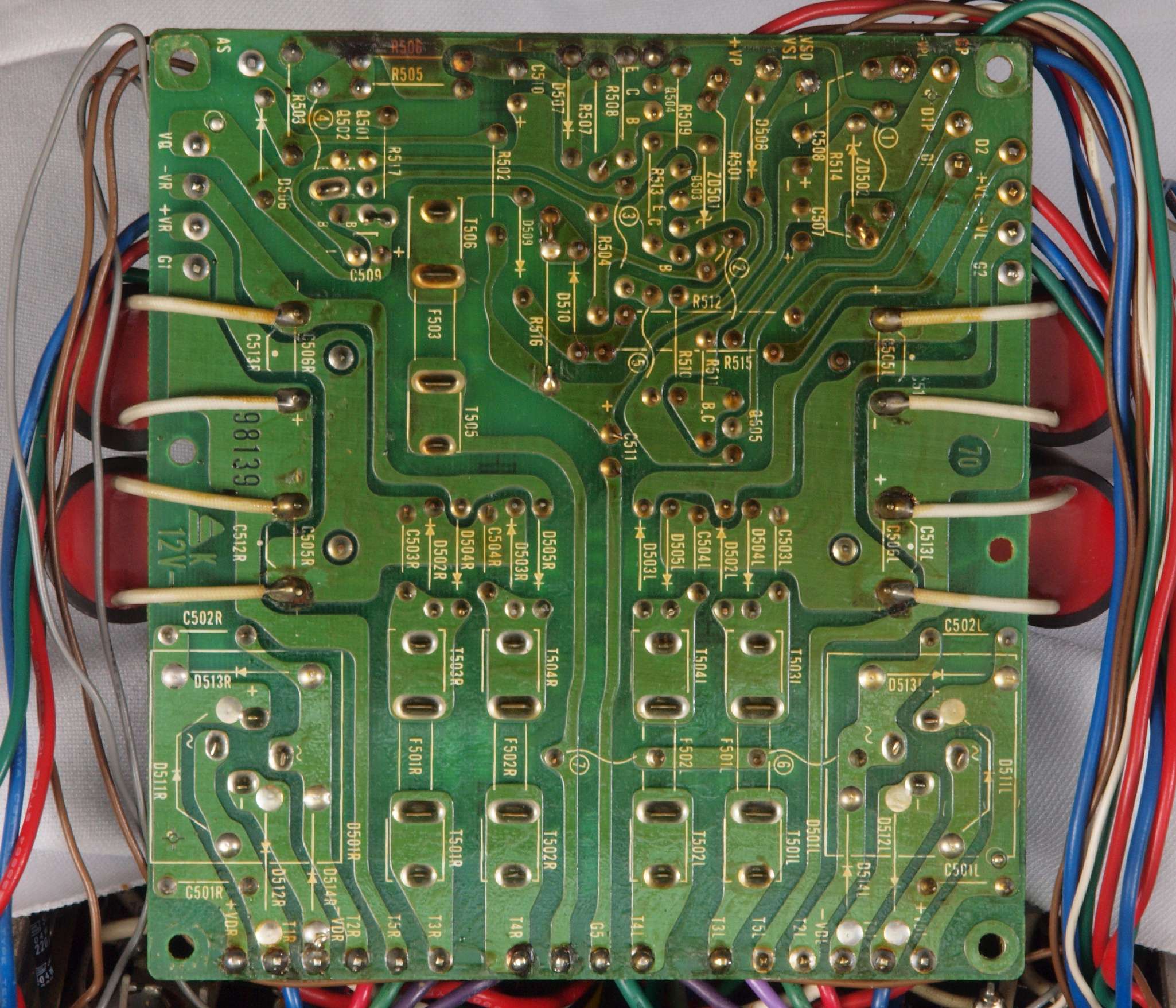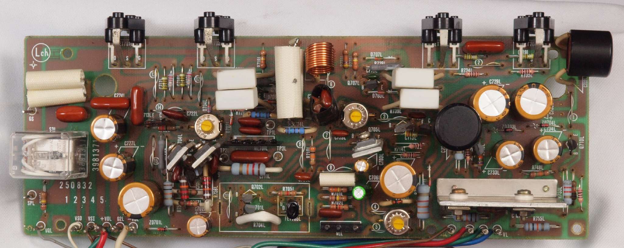 | C43. 修理後 RLモジュール裏。 TR(トランジスター)交換後軽くラッカーを吹きました。 |